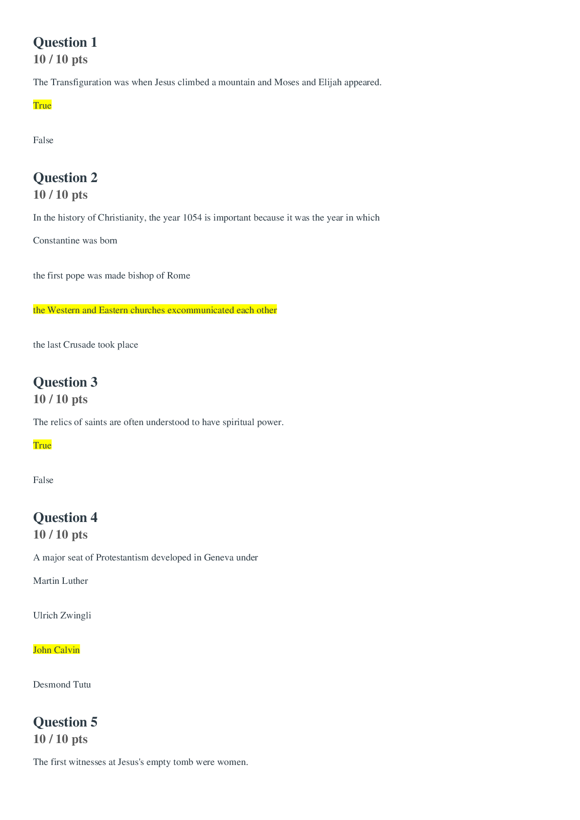 Religious Studies > EXAM REVIEW > HIEU 201Chapter 5 quiz (Latest-2020) : Liberty University (100% Correct Answers) (All)