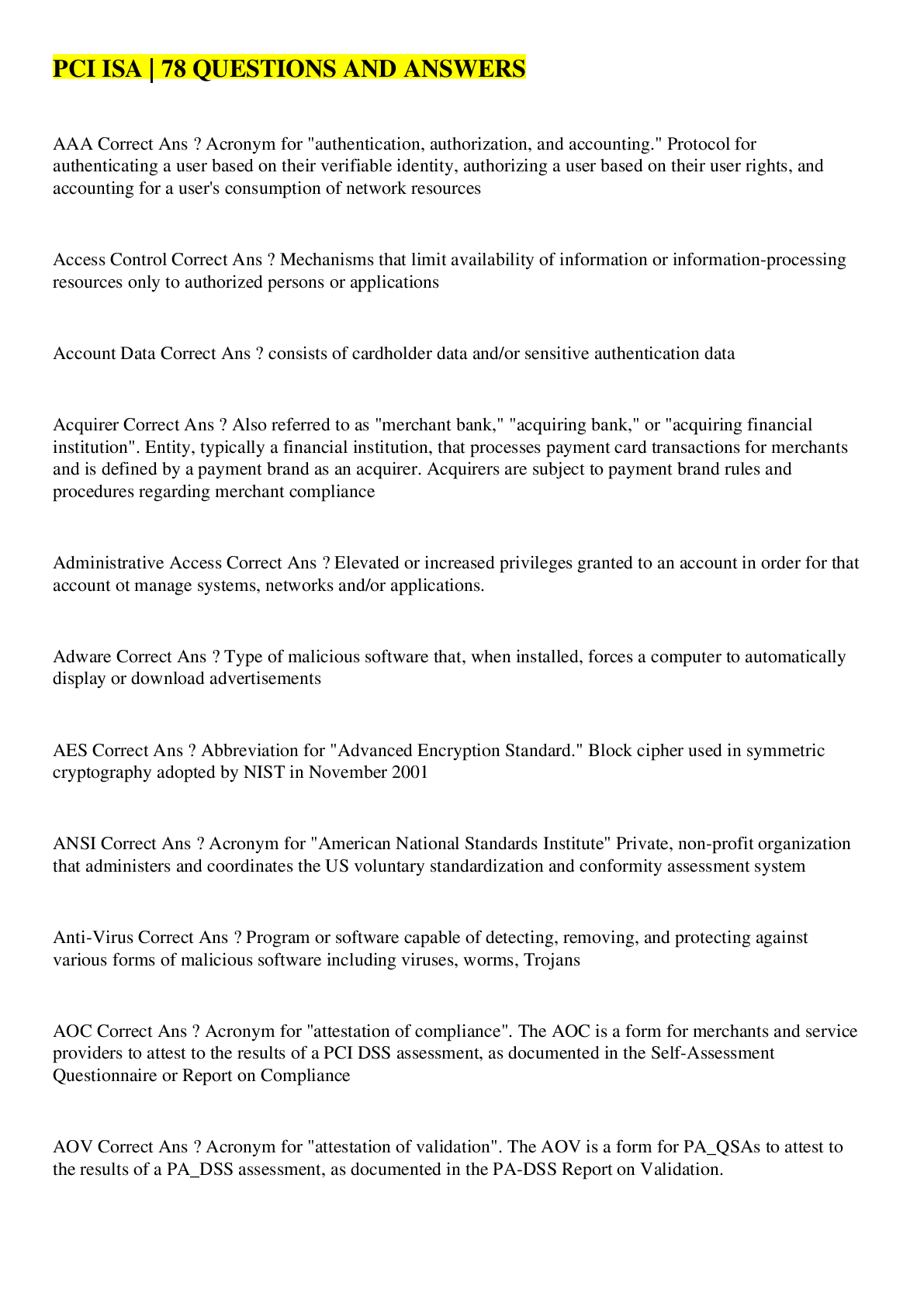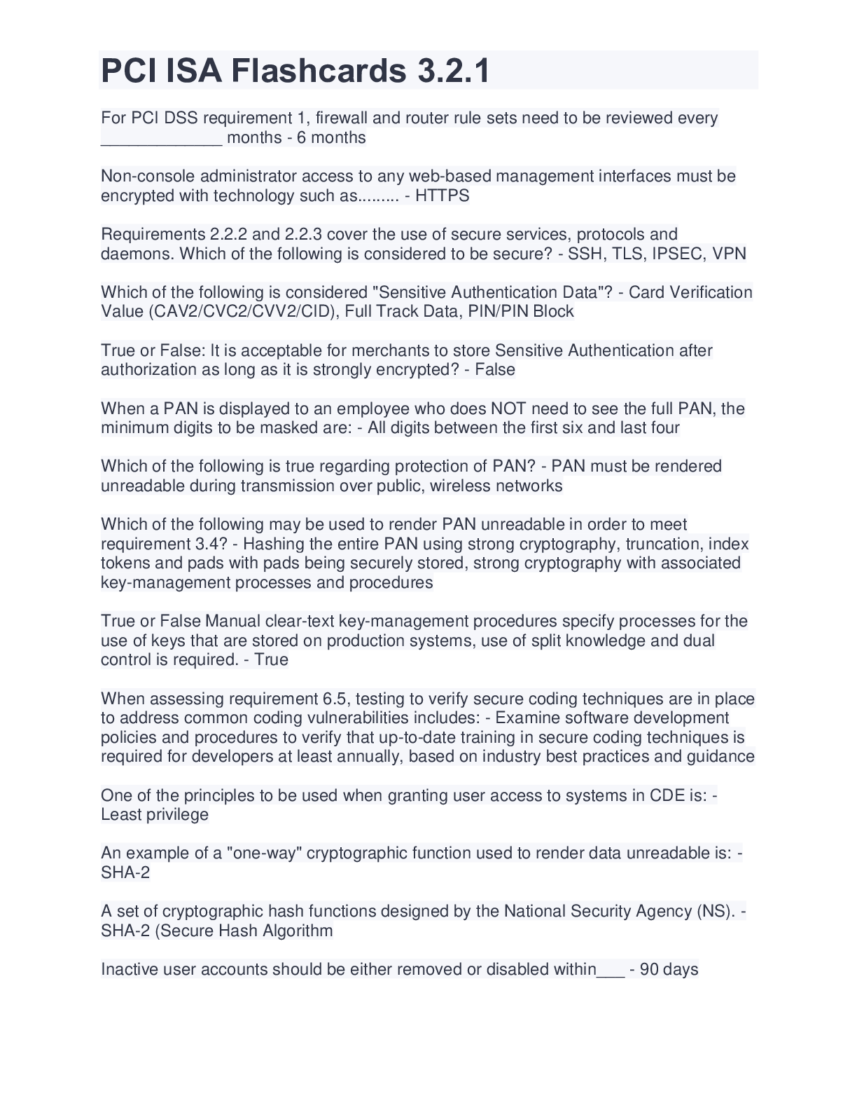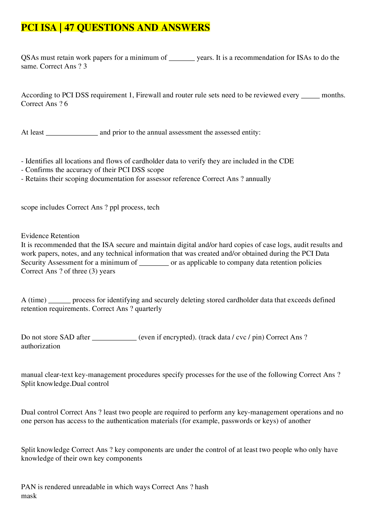 Urban Policy and Planning > EXAM > PCI-DSS ISA Exam | 82 QUESTIONS AND ANSWERS (All)