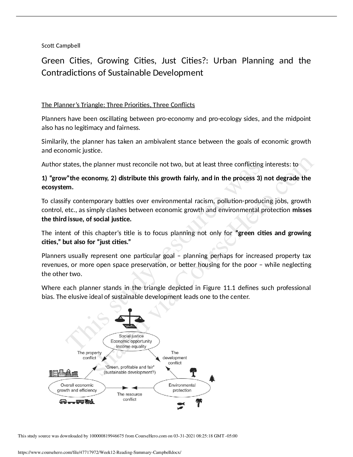 Urban Policy and Planning > STUDY GUIDE > Green Cities, Growing Cities, Just Cities?: Urban Planning and the Contradictions of Sustainable Development Columbia University - GSAPP PLA4008Week12_Reading Summary_Campbell (All)