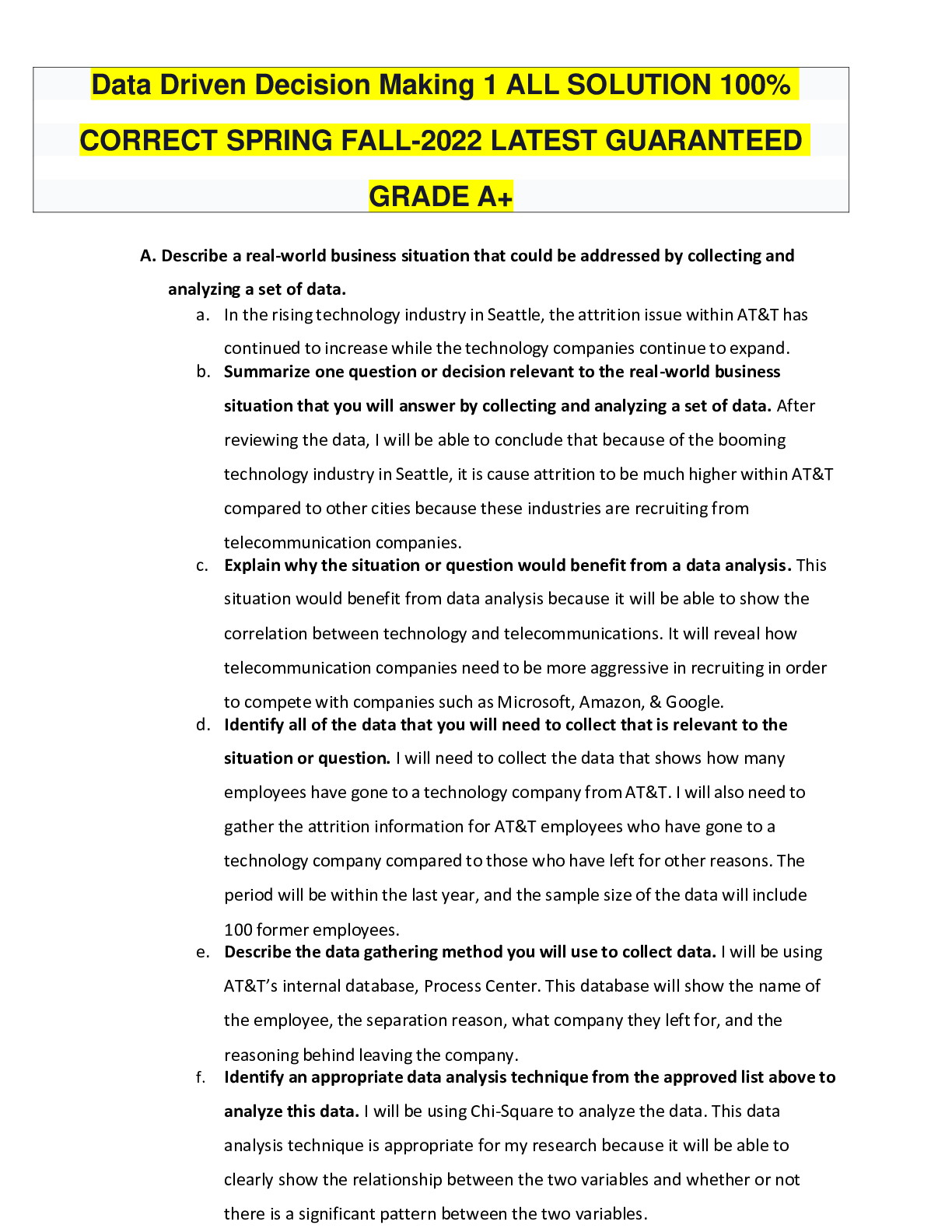 Management > QUESTIONS and ANSWERS > Data Driven Decision Making 1 ALL SOLUTION 100% CORRECT SPRING FALL-2022 LATEST GUARANTEED GRADE A+ (All)