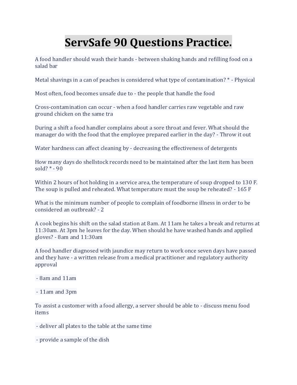 Management > EXAM > Servsafe Practice Test (90 questions) And Answers Latest Update With Complete Top Solution. (All)