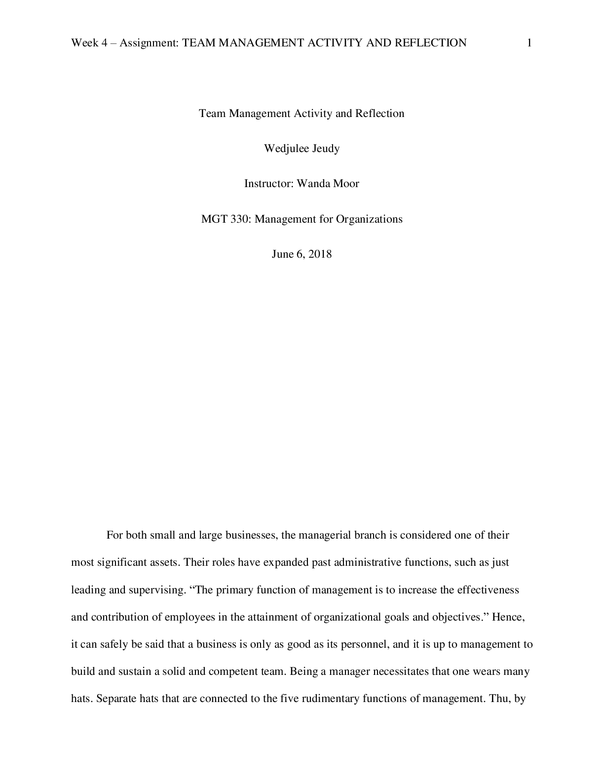 Management > STUDY GUIDE > MGT 330 Week 4 Assignment Team Management Activity and Reflection (All)