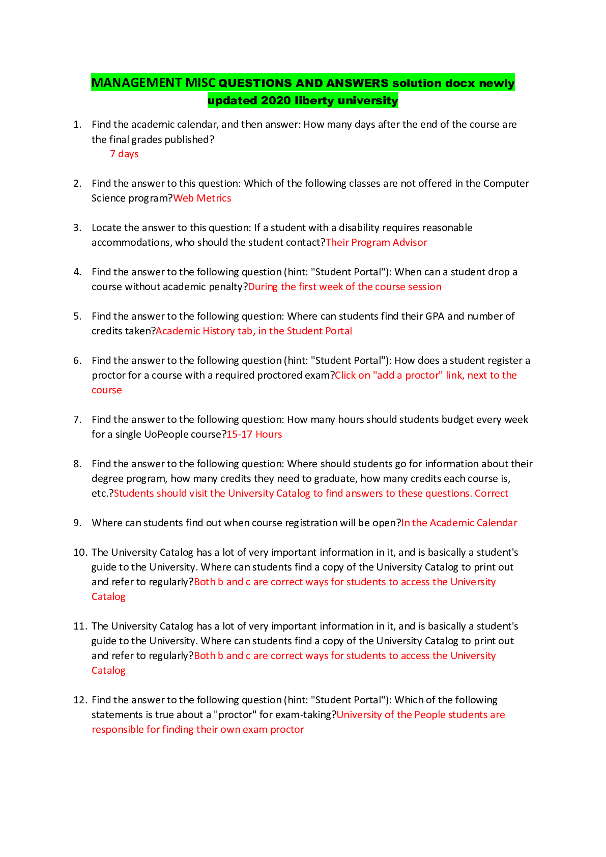 Management > QUESTIONS & ANSWERS > MANAGEMENT MISC QUESTIONS AND ANSWERS solution docx newly updated 2020 liberty university (All)