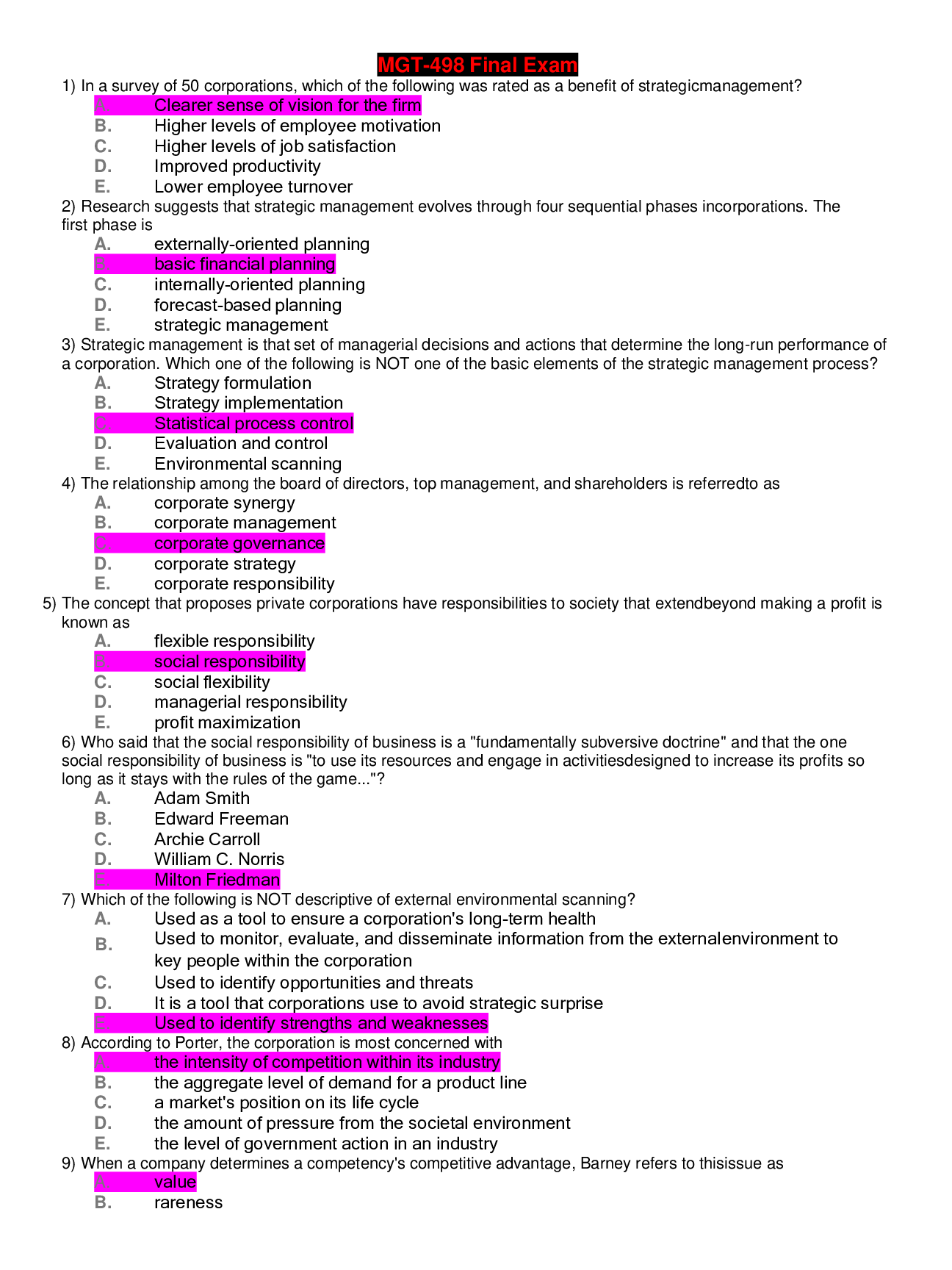 Management > EXAM > MGT 498 Final Exam 2021 All Information Needed to Score Top Grade (All)