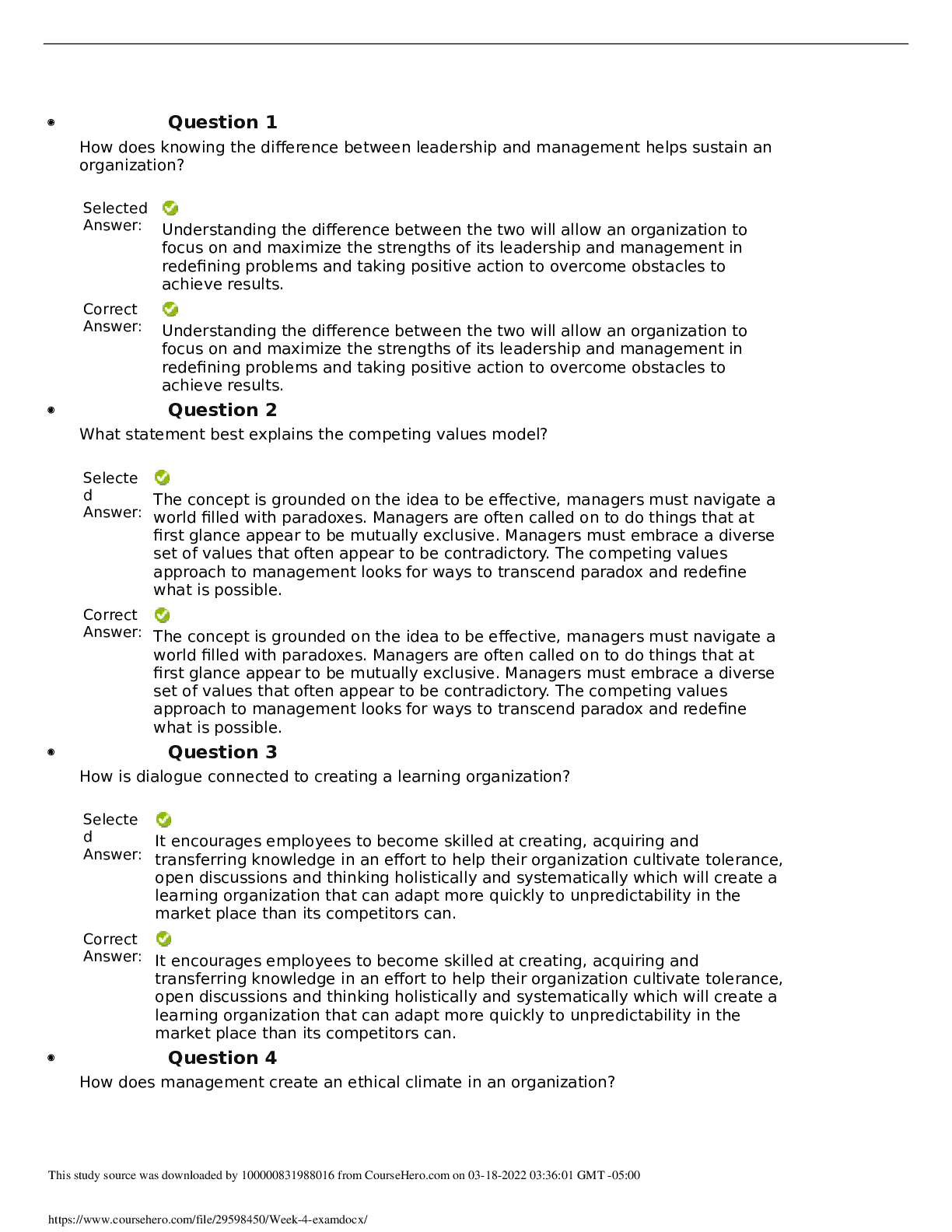 Management > QUESTIONS & ANSWERS > MN 502 Quiz 7 Unit 7 - Question and Answers Highlighted 100% CORRECT (All)