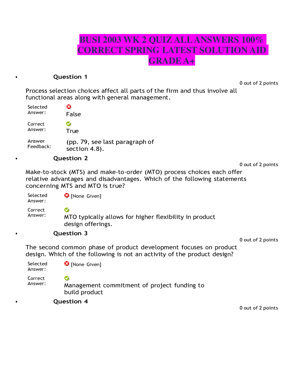 Management > EXAM > BUSI 2003 WK 2 QUIZ ALL ANSWERS 100% CORRECT SPRING LATEST SOLUTION AID GRADE A+ (All)
