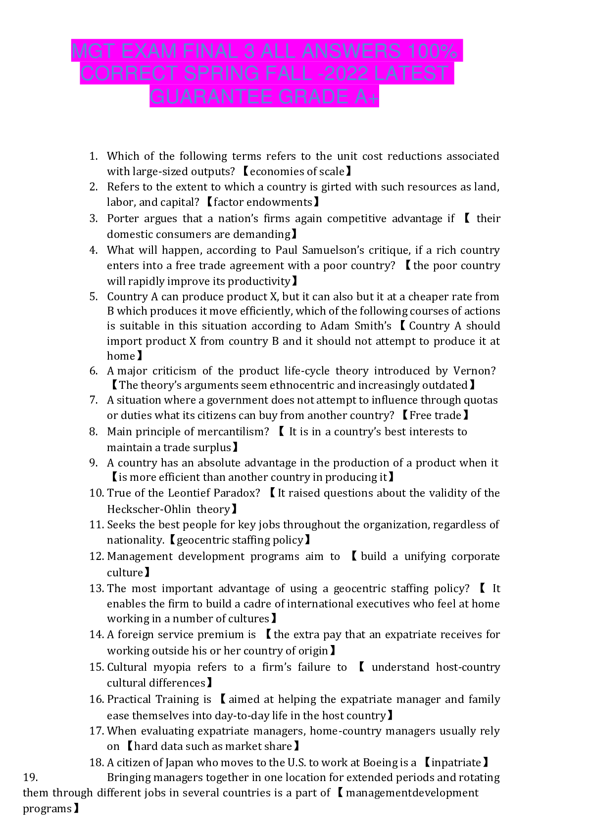 Management > EXAM > MGT EXAM FINAL 3 ALL ANSWERS 100% CORRECT SPRING FALL -2022 LATEST GUARANTEE GRADE A+ (All)