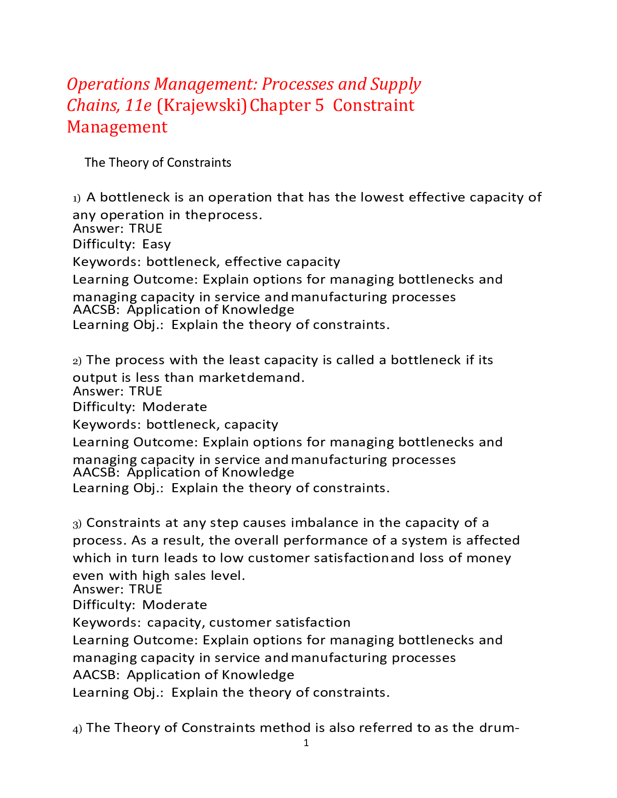 Management > EXAM > Operations Management: Processes and Supply Chains, 11e (Krajewski) Chapter 5 Constraint Management,100% CORRECT (All)