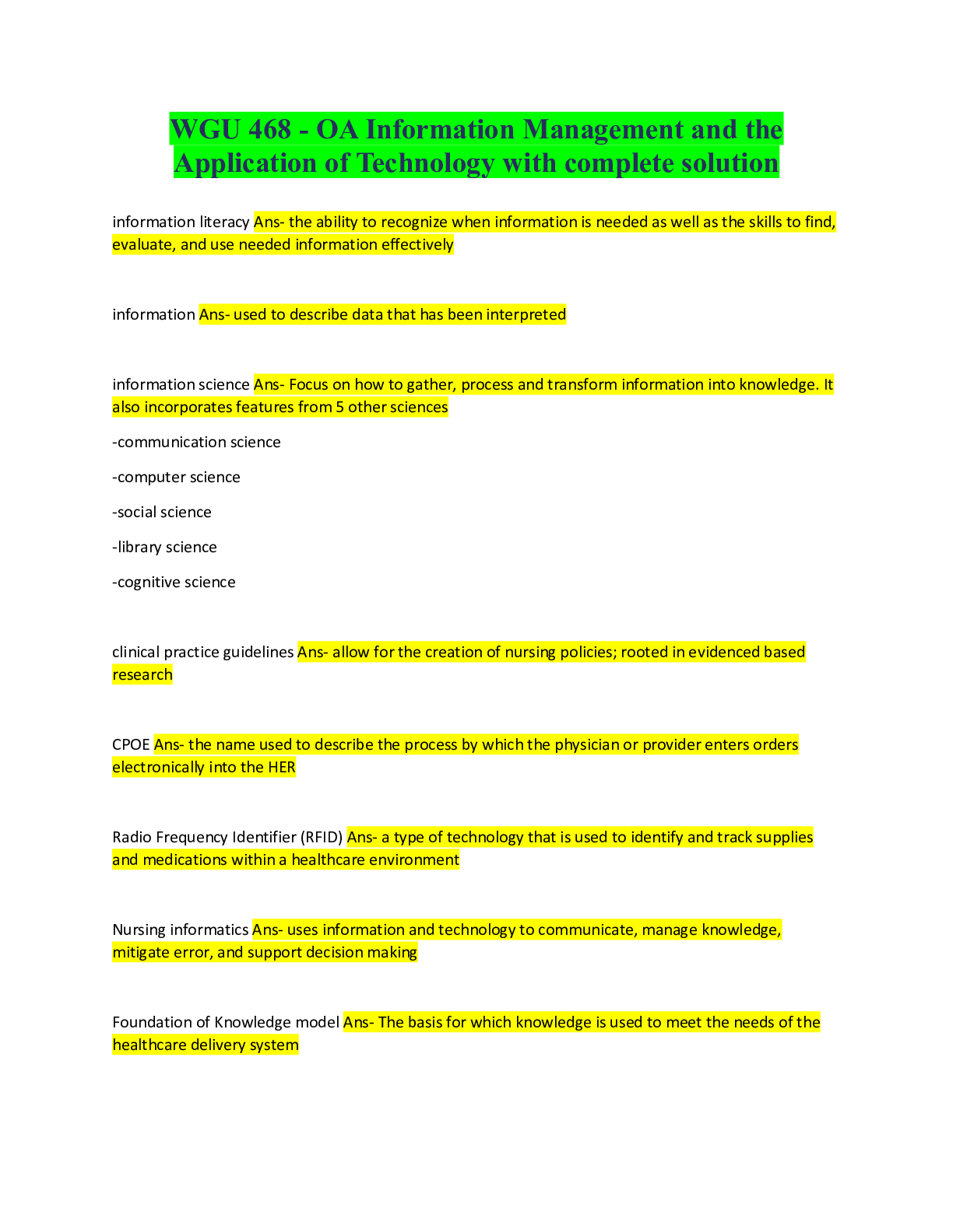 Management > EXAM > WGU 468 - OA Information Management and the Application of Technology with complete solution (All)