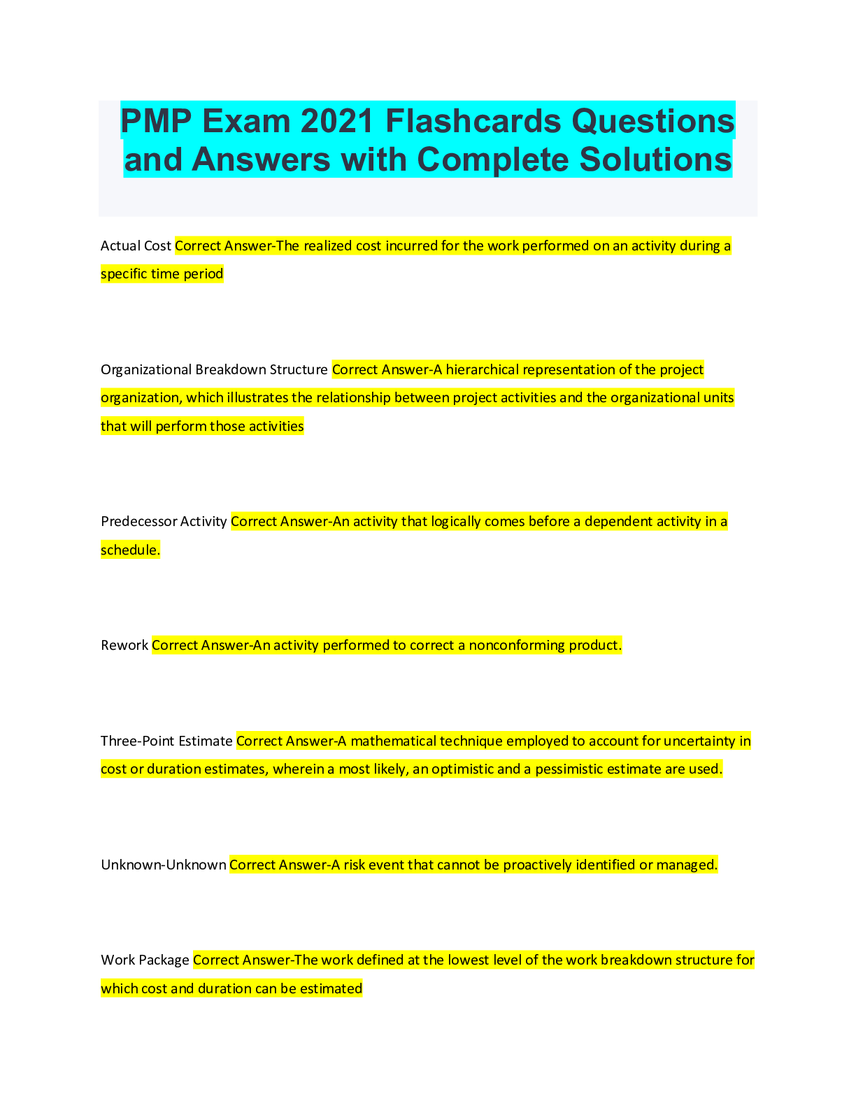 Management > EXAM > PMP Exam 2021 Flashcards Questions and Answers with Complete Solutions (All)