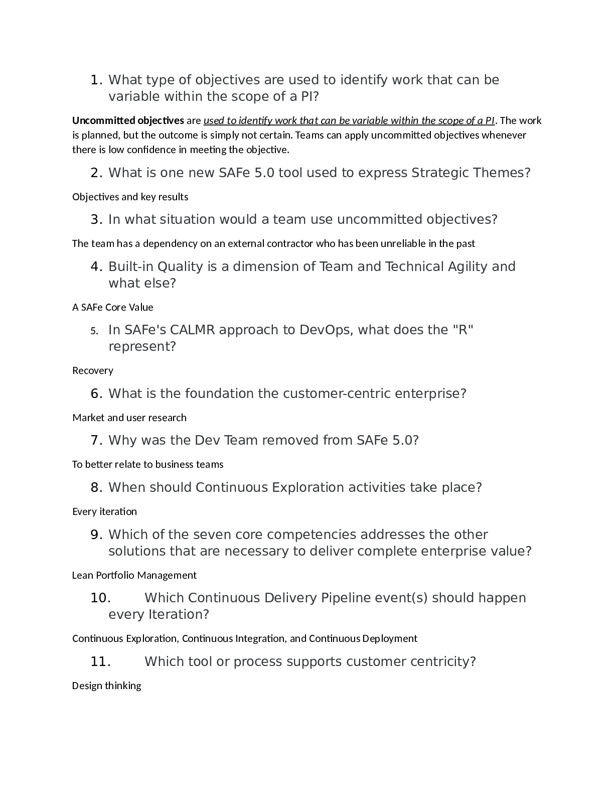 Management > QUESTIONS & ANSWERS > Scaled Agile Framework (SAFe) 5.0 Quiz Answers, Updated June 2022 Guaranteed A+ (All)
