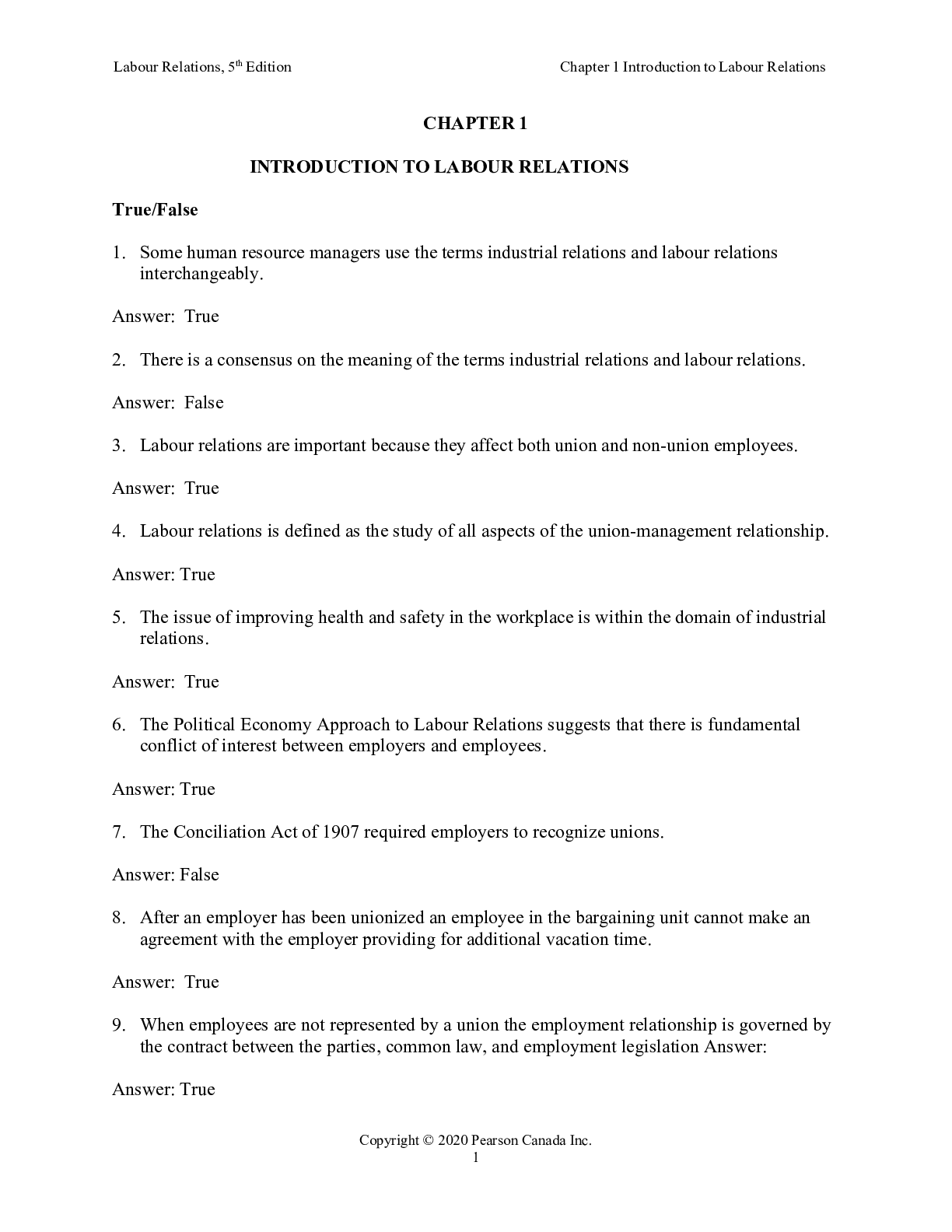 Management > TEST BANKS > Test Bank Labour Relations, 5th Edition by Larry Suffield; Gary Gannon (All)