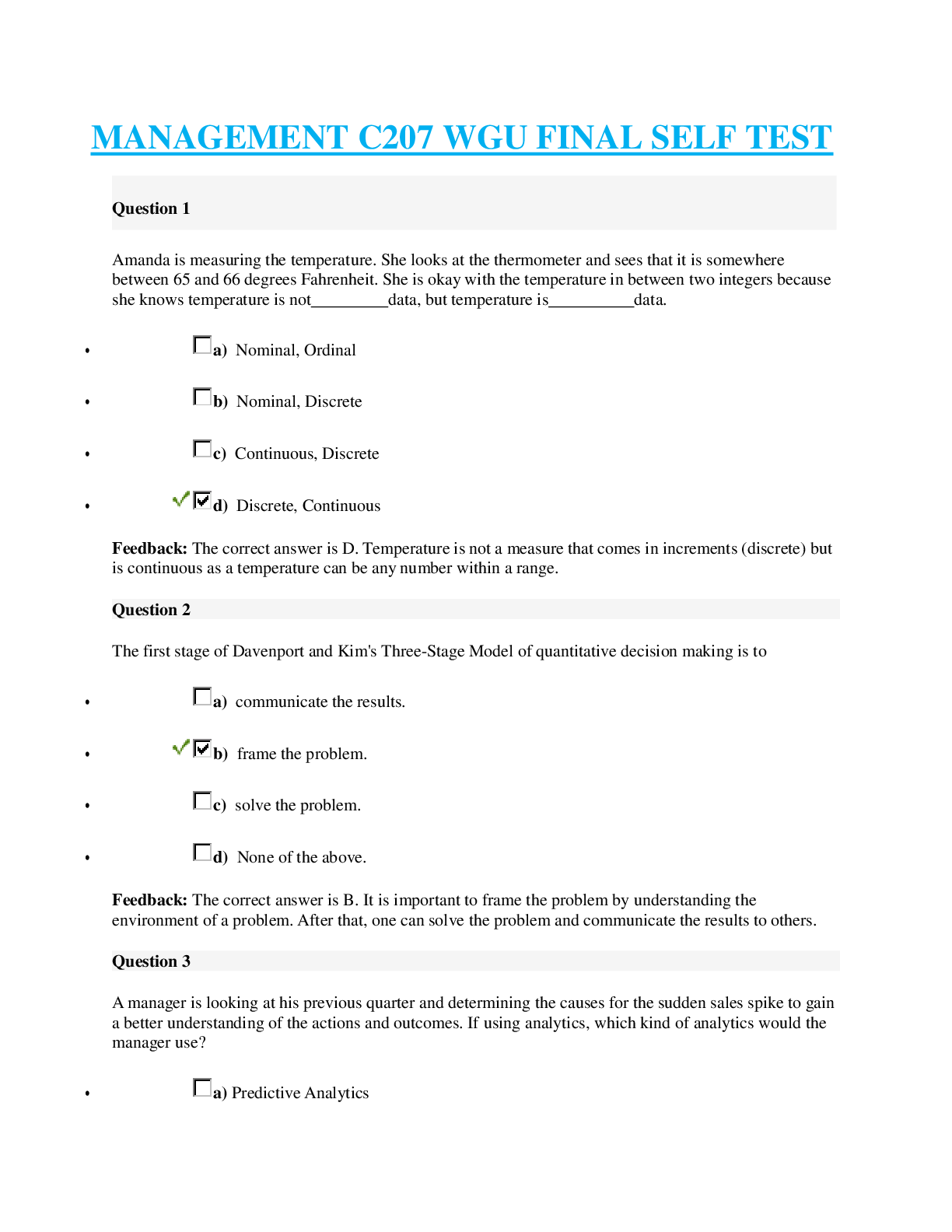 Management > EXAM > WGU MANGEMENT C207 FINAL SELF TEST EXAM QUESTIONS WITH CORRECT ANSWERS AND EXPLANATIONS.BEST TO BOOST YOUR GRADES. (All)