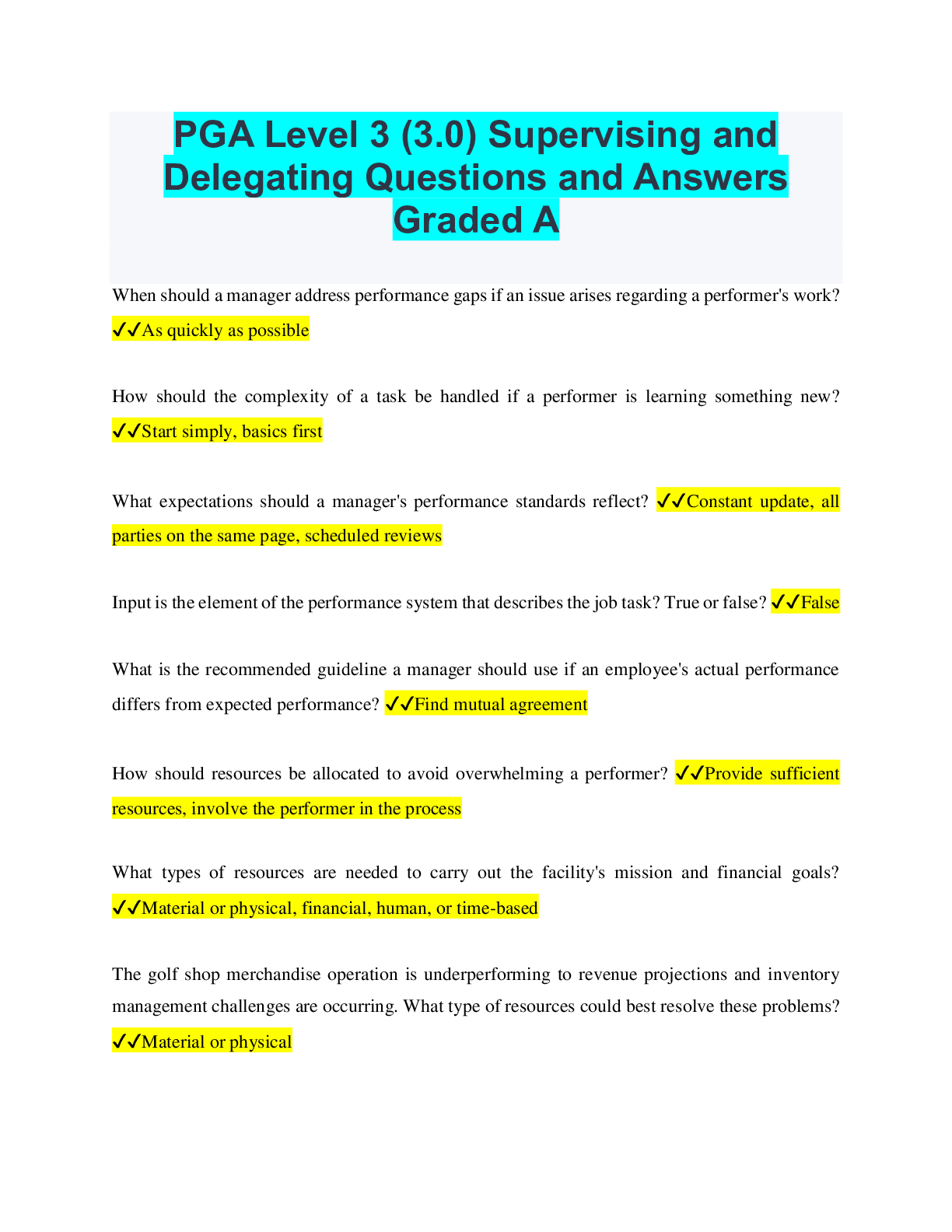 Management > QUESTIONS & ANSWERS > PGA Level 3 (3.0) Supervising and Delegating Questions and Answers Graded A (All)
