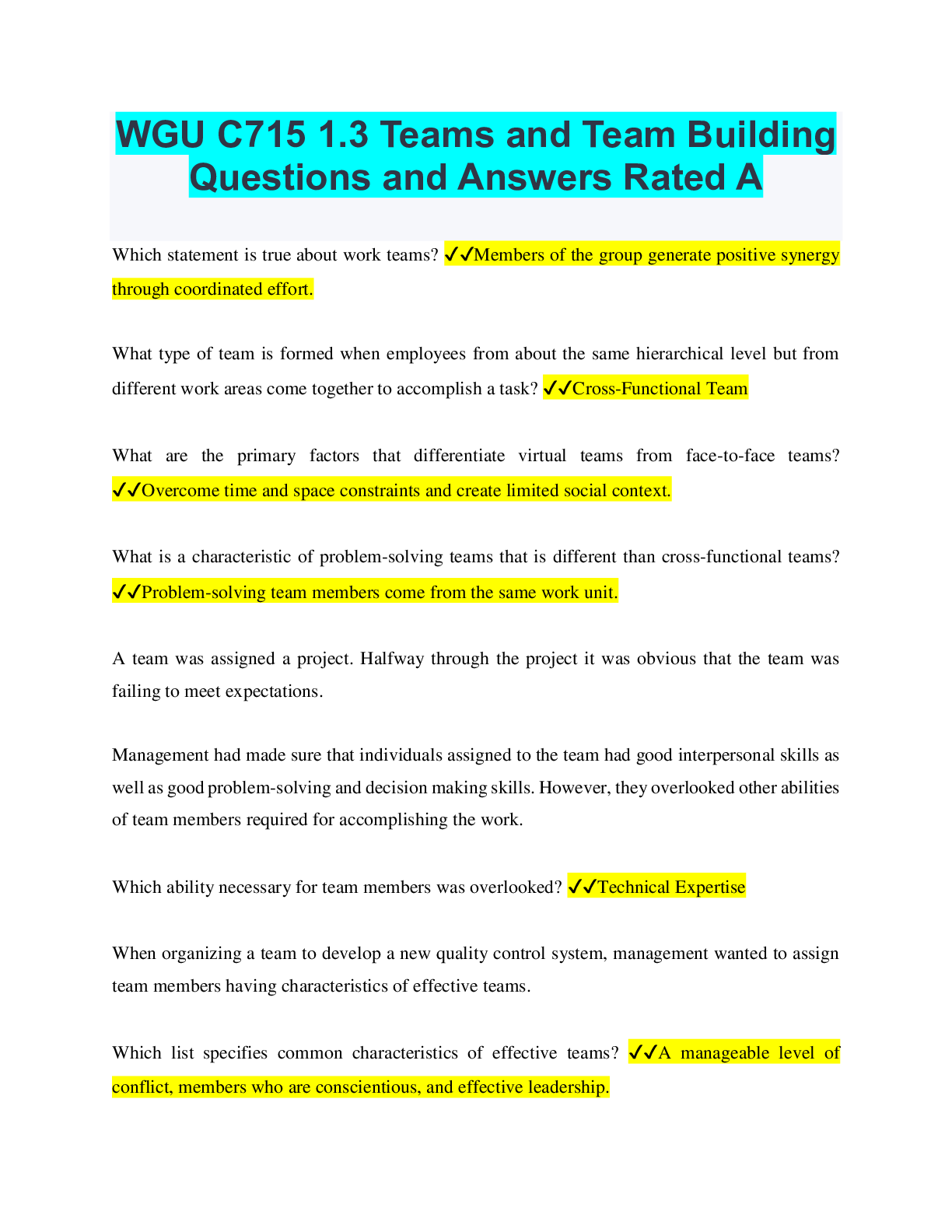 Management > QUESTIONS & ANSWERS > WGU C715 1.3 Teams and Team Building Questions and Answers Rated A (All)