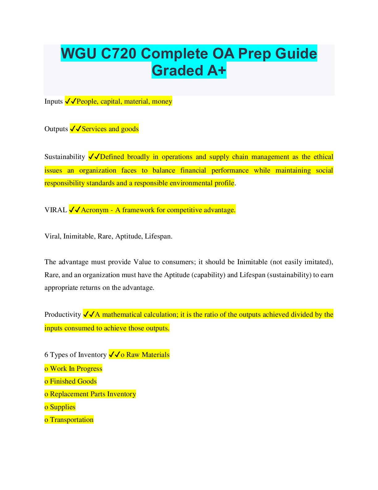 Management > QUESTIONS & ANSWERS > WGU C720 Complete OA Prep Guide Graded A+ (All)