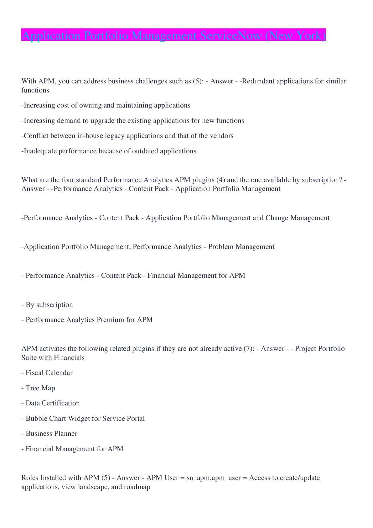 Management > QUESTIONS & ANSWERS > APM #2: Application Portfolio Management (APM) CIS Exam ServiceNow (All)