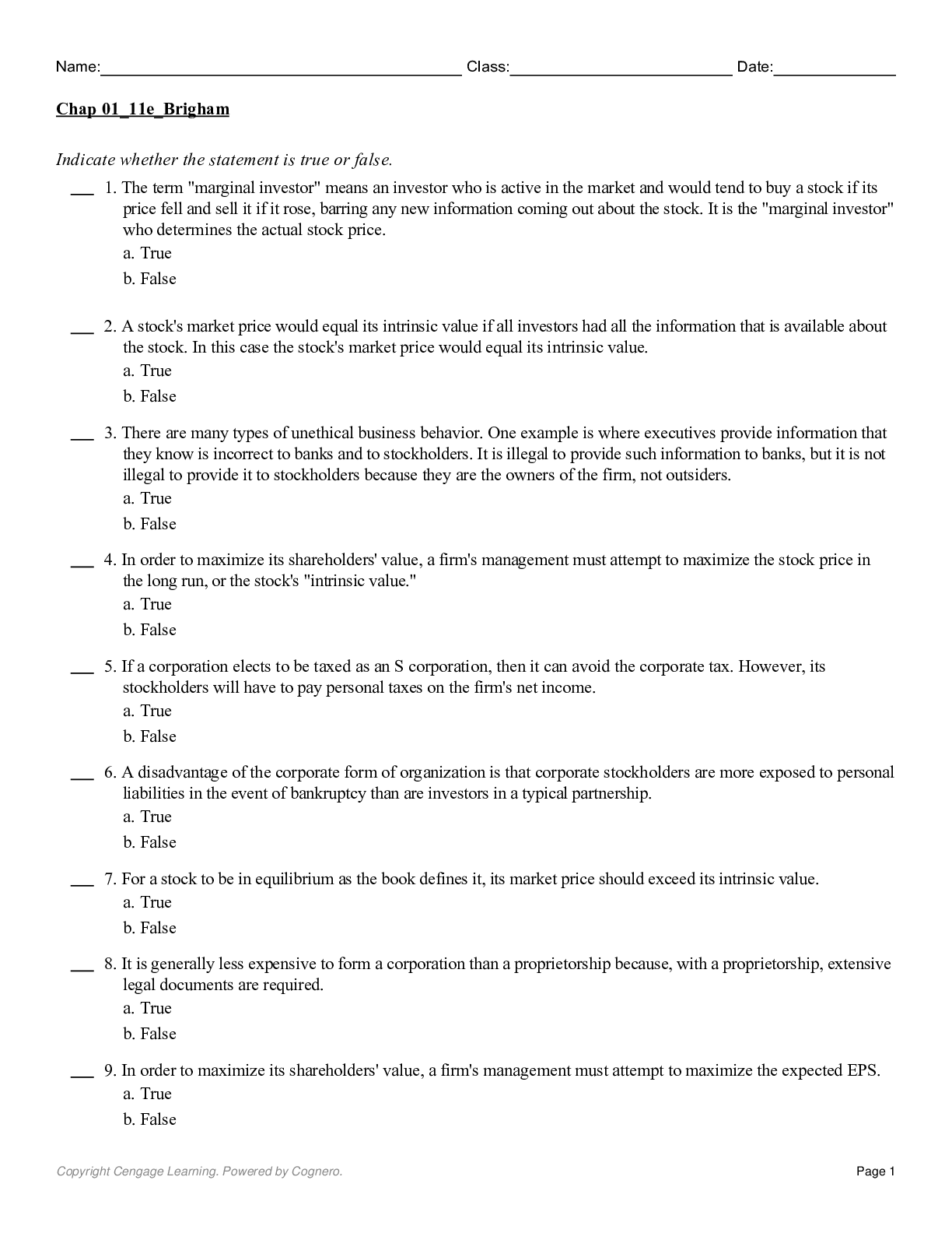 Management > TEST BANKS > Test Bank for Fundamentals of Financial Management, Concise Edition, 11th Edition by Brigham (All)