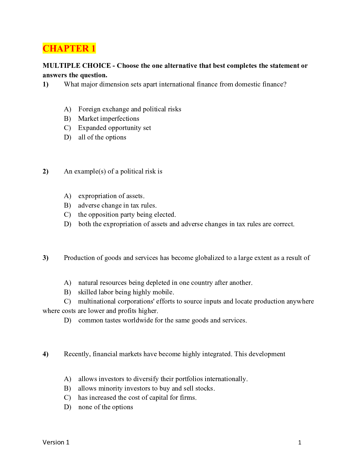 Management > TEST BANKS > Multinational Financial Management, 11th Edition by Shapiro TEST BANK (All)