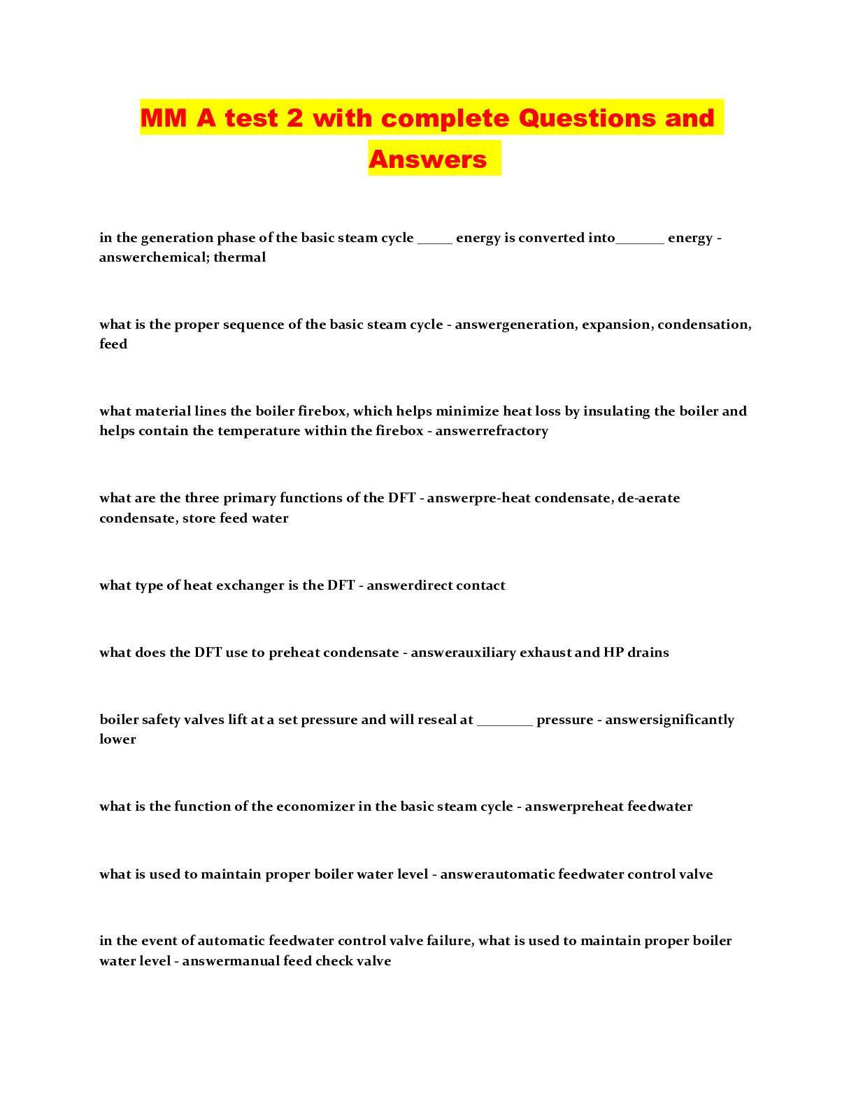 Management > QUESTIONS & ANSWERS > MM A test 2 with complete Questions and Answers (All)