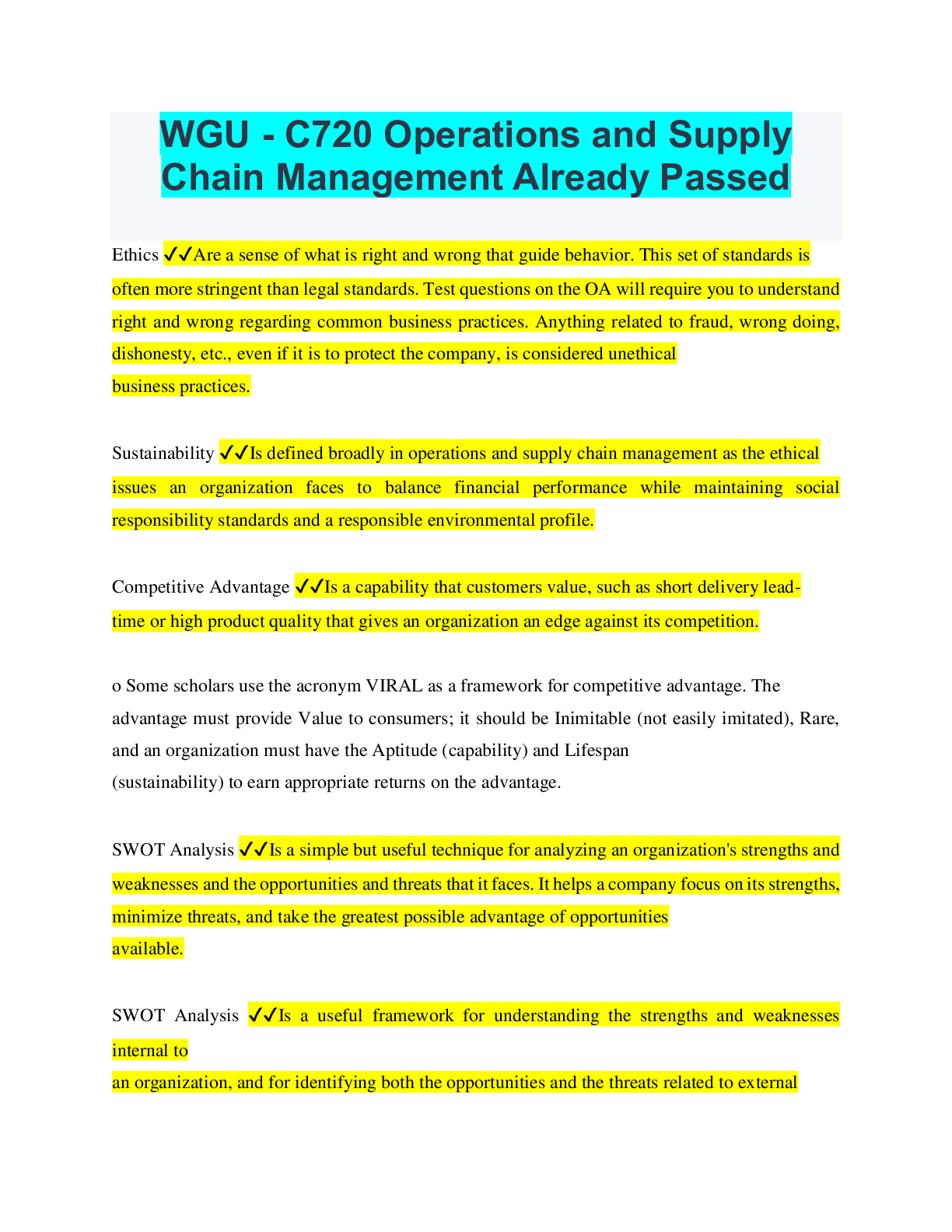 Management > QUESTIONS & ANSWERS > WGU - C720 Operations and Supply Chain Management Already Passed (All)
