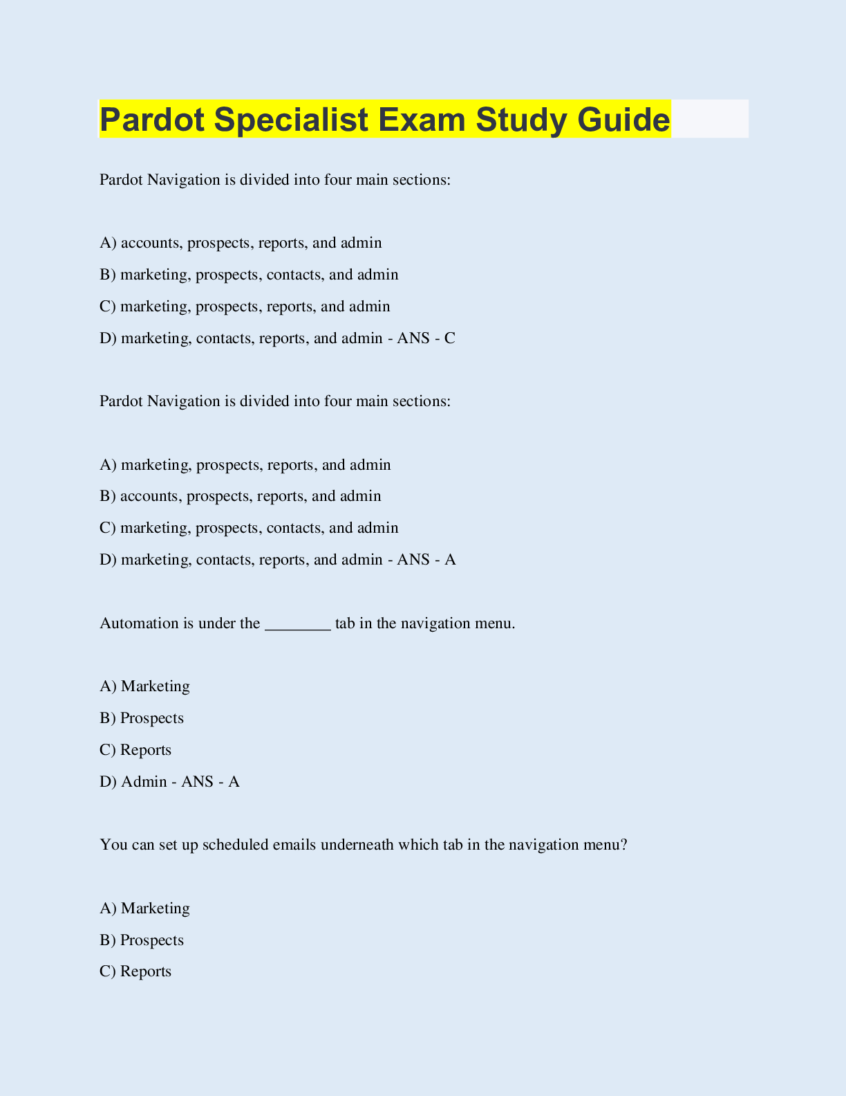 Management > QUESTIONS & ANSWERS > Pardot Specialist Exam Study Guide (All)