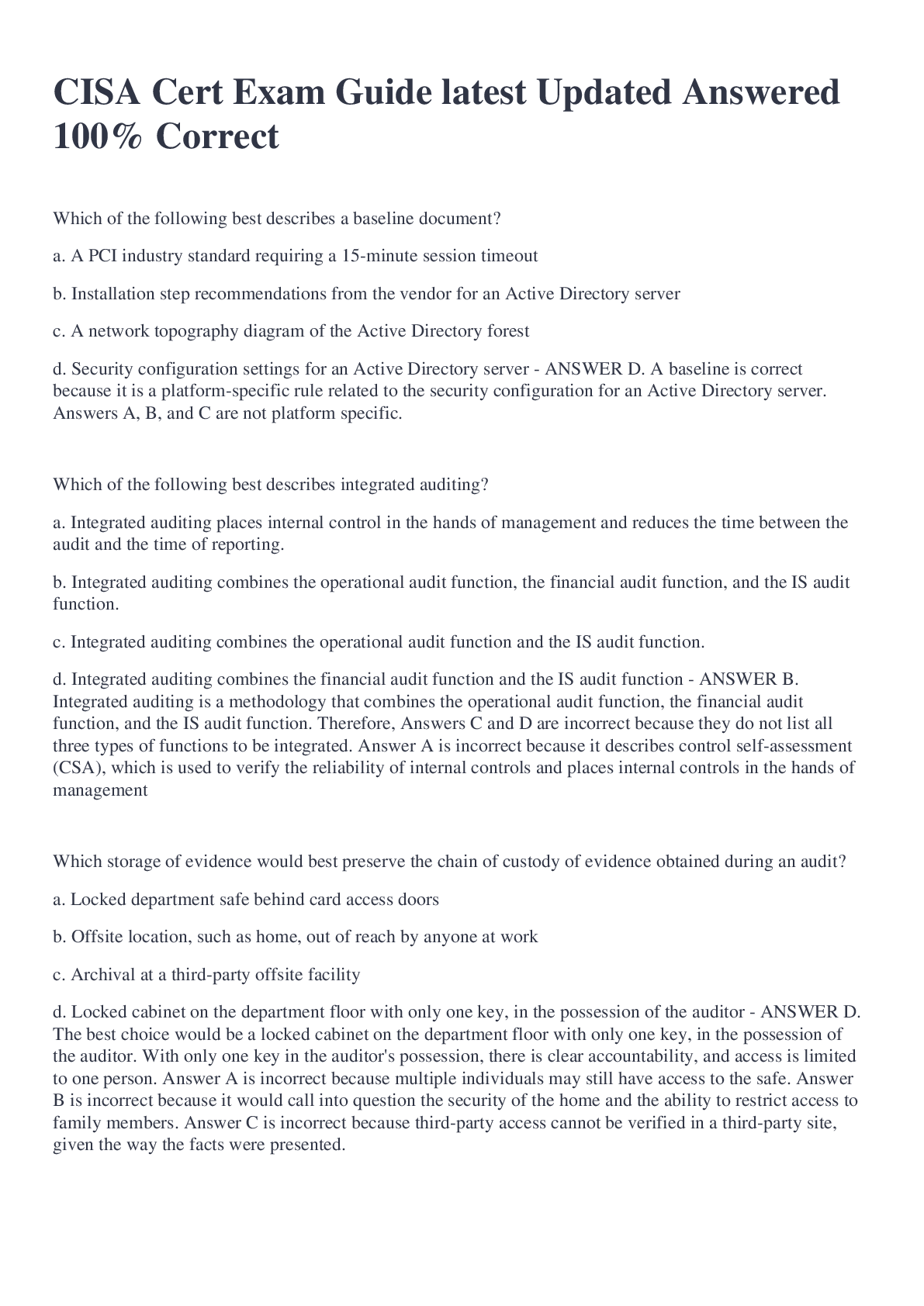 Management > EXAM > CISA Cert Exam Guide latest Updated Answered 100% Correct (All)