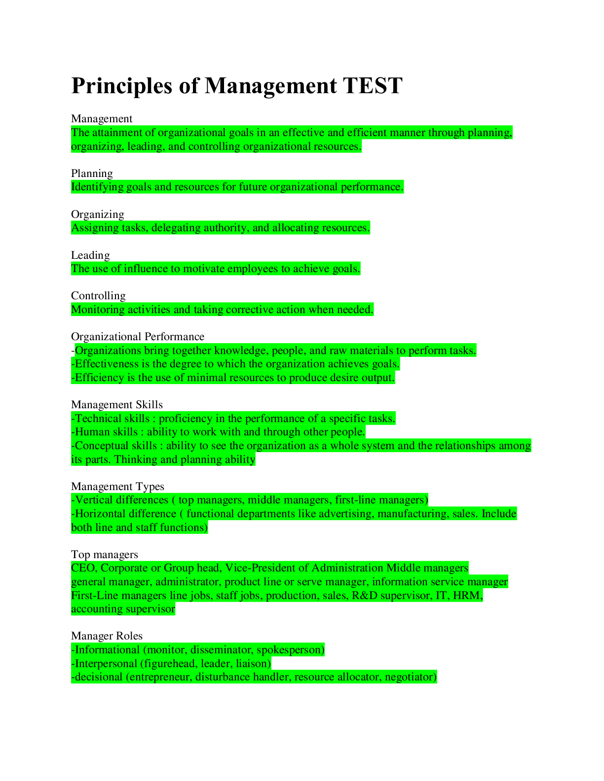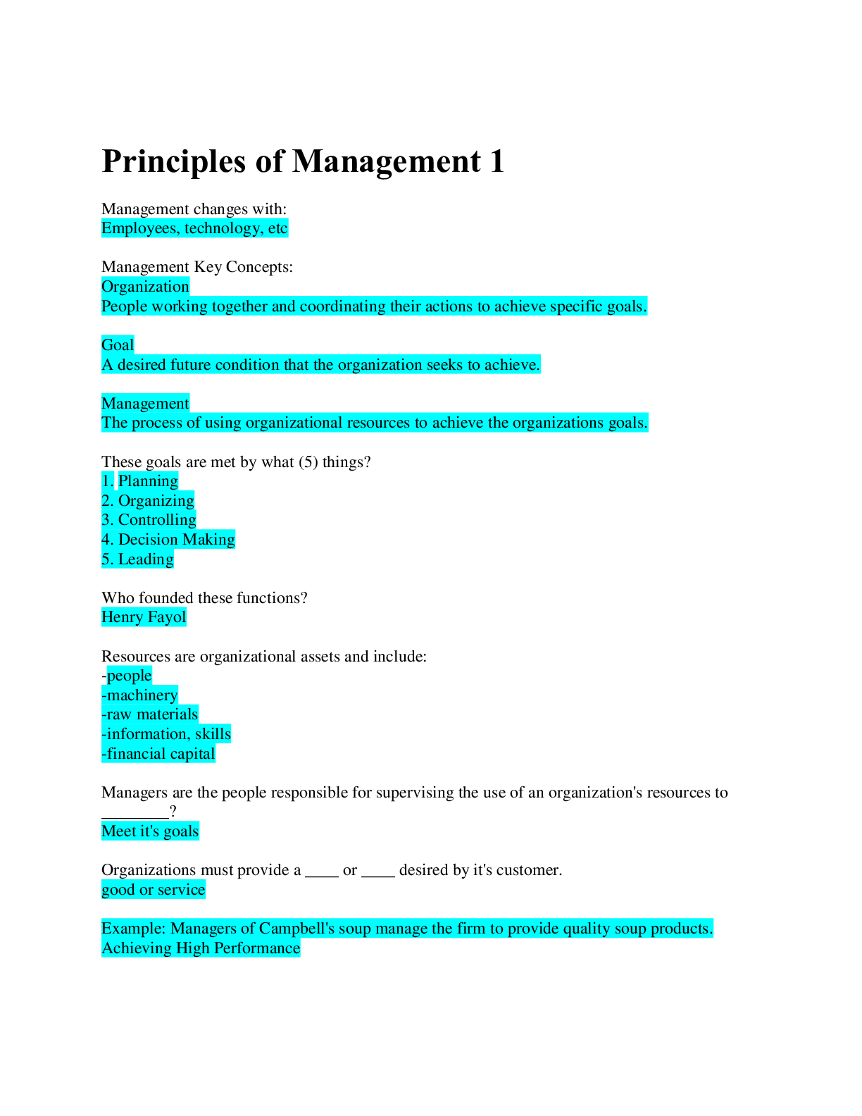 Management > EXAM > Principles of Management / 100% Verified Questions and Answers (All)