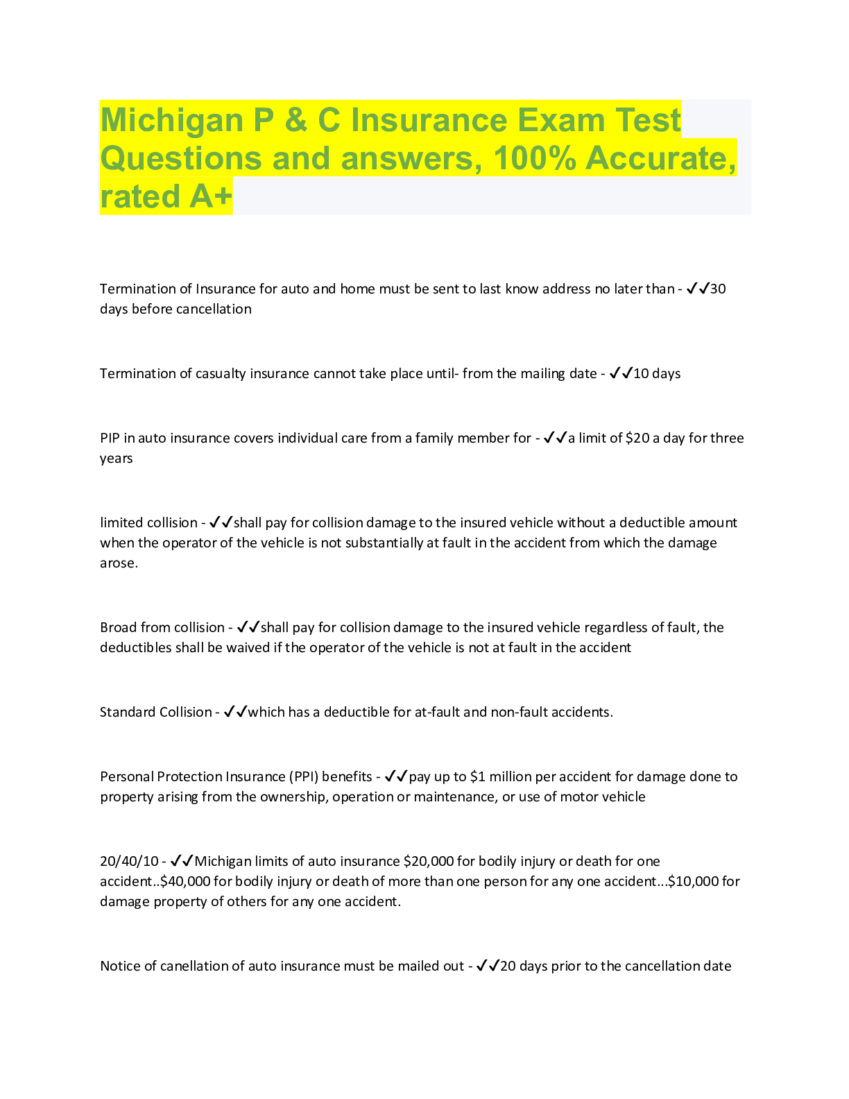Management > QUESTIONS & ANSWERS > Michigan P & C Insurance Exam Test Questions and answers, 100% Accurate, rated A+ (All)
