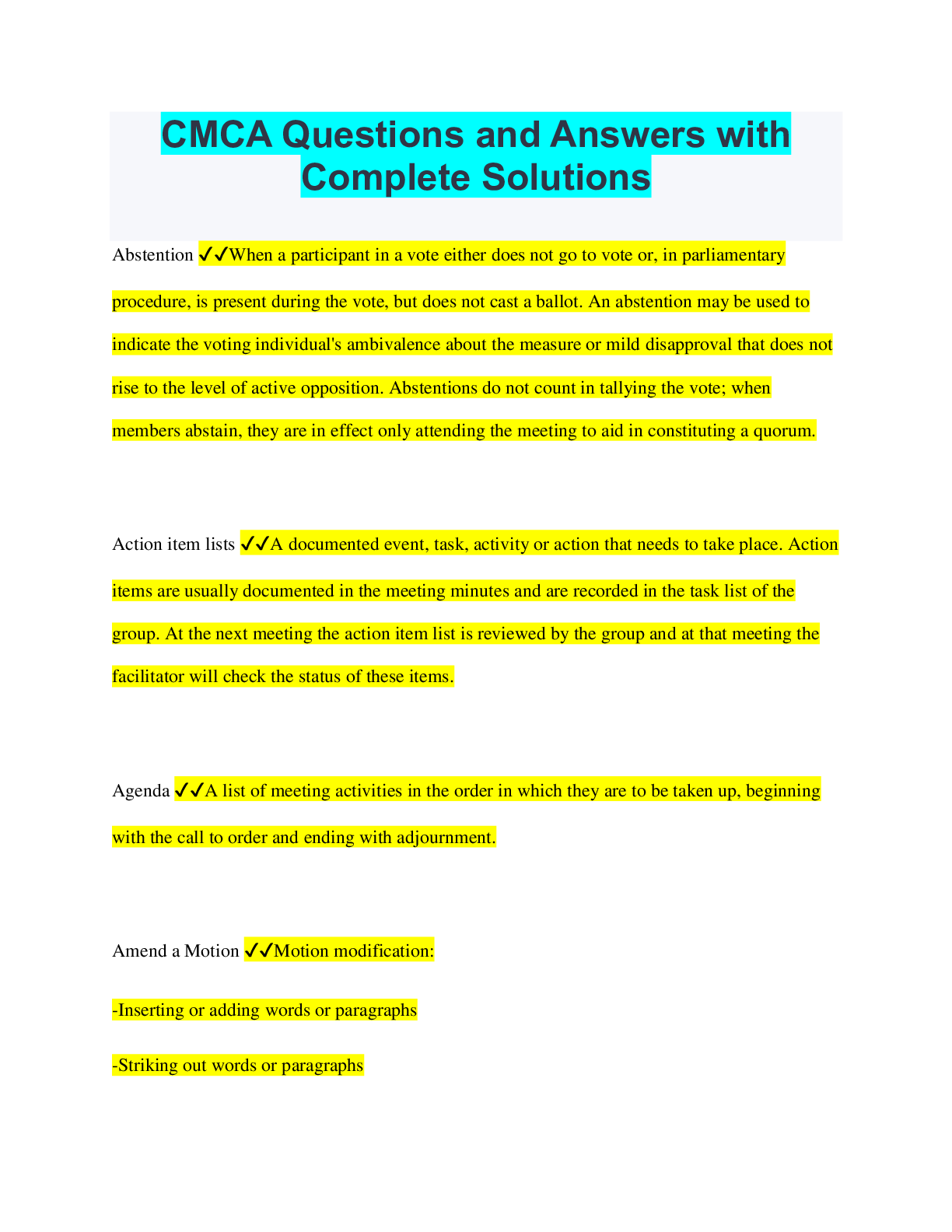 Management > QUESTIONS & ANSWERS > CMCA Sample Exam Questions and Answers 100% Pass (All)