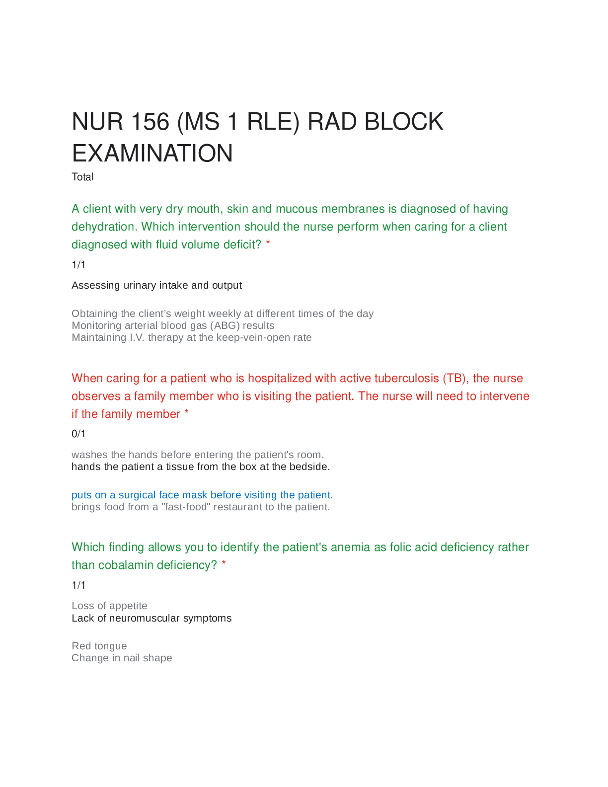 healthcare > EXAM > NUR 156 (MS 1 RLE) RAD BLOCK EXAMINATION QUESTIONS AND ANSWERS 2023. (All)