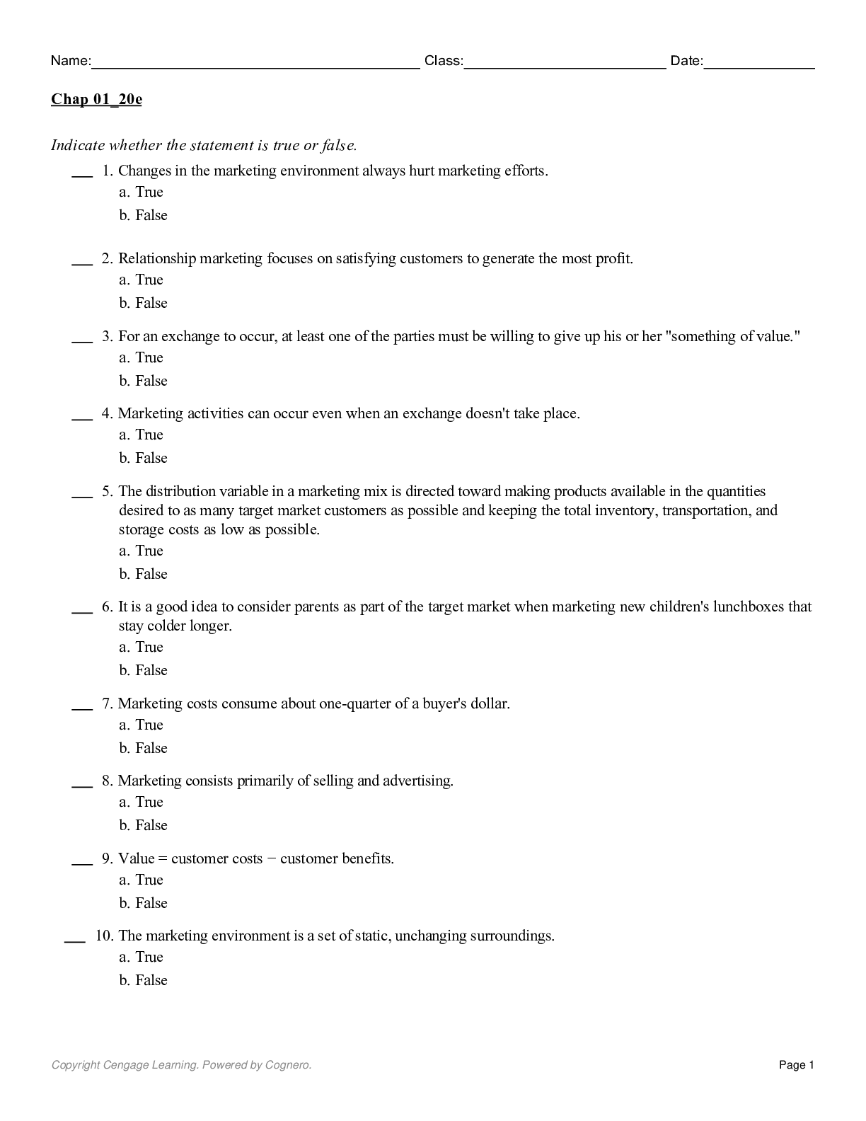 Marketing > TEST BANKS > Marketing 20th Edition by William Pride and Ferrell TEST BANK (All)