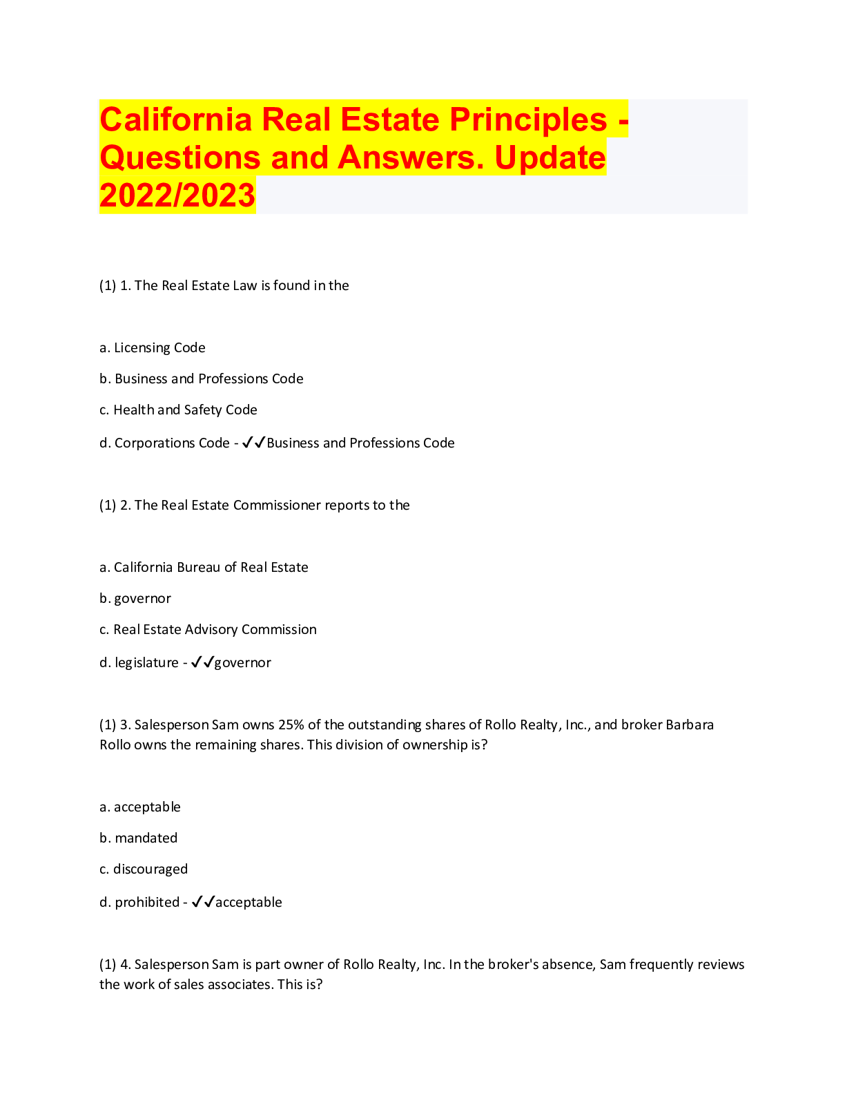 Real Estate > EXAM > California Real Estate Exam Multiple Choice Questions with COMPLETE SOLUTIONS 510 Questions with 100% Correct Answers (All)