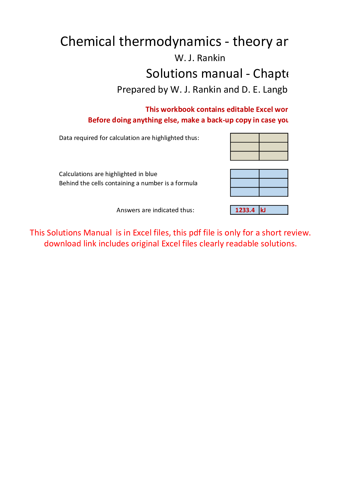 Thermodynamics > SOLUTIONS MANUAL > Chemical Thermodynamics Theory and Applications , 1e W J Rankin (Solution Manual) (All)