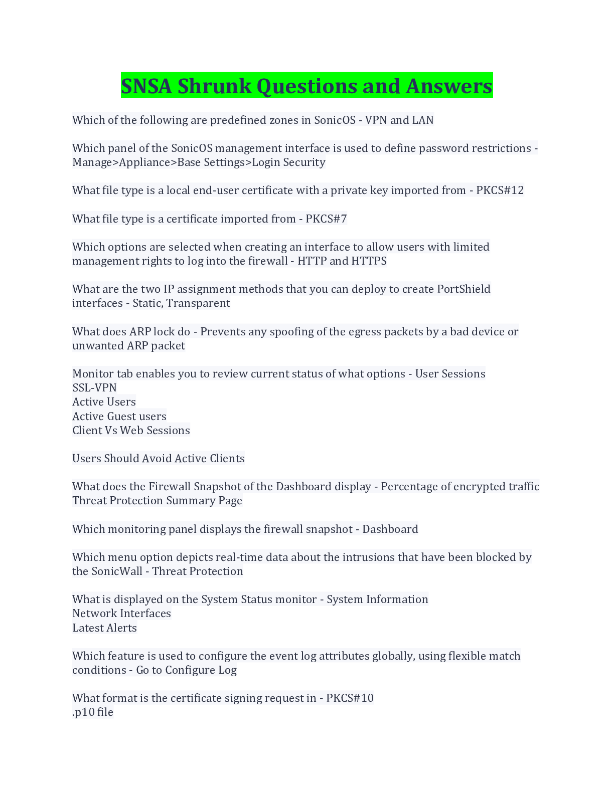 Computer Networking > EXAM > SNSA Shrunk Questions and Answers Latest Update/ Download (All)
