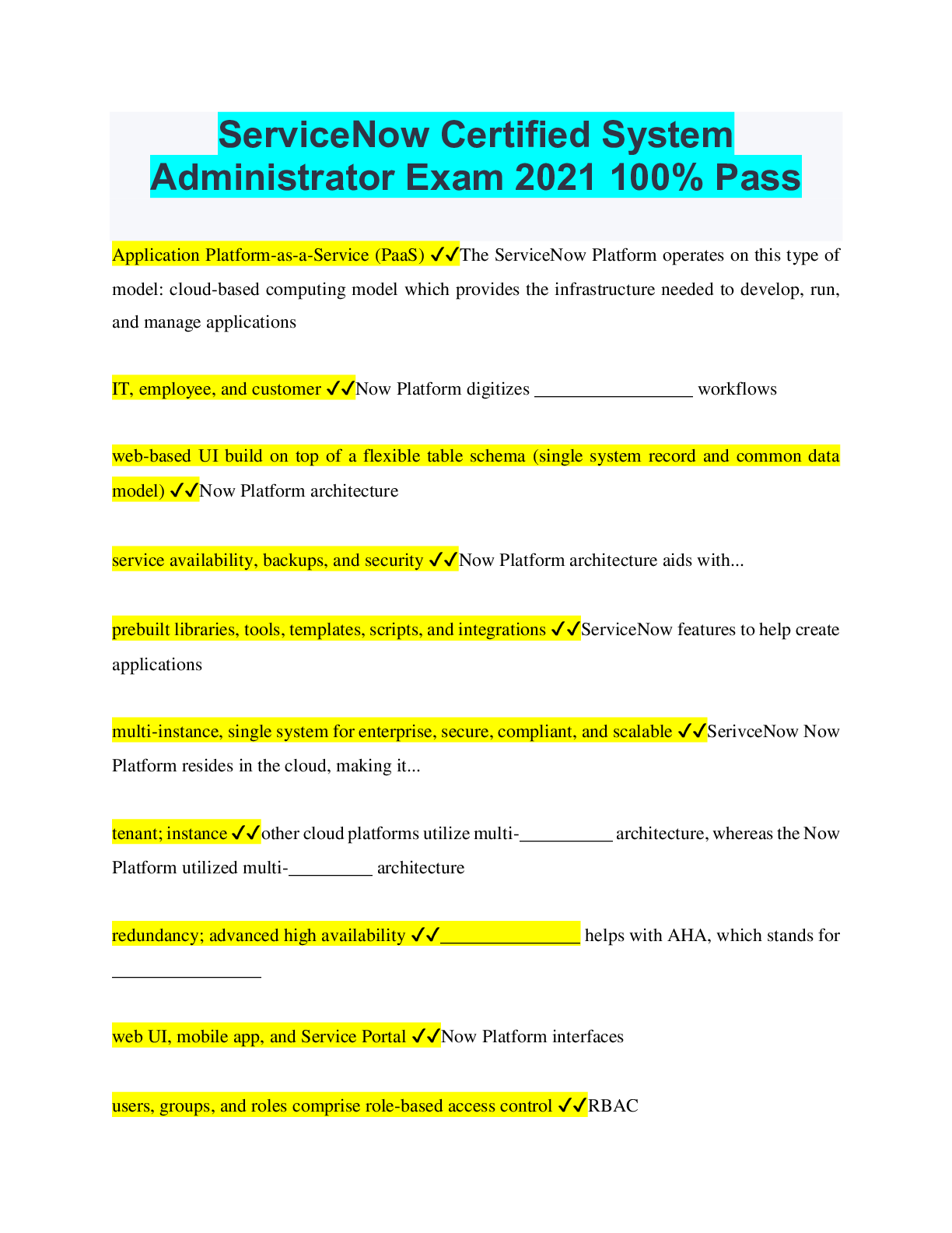 Computer Networking > EXAM > ServiceNow Certified System Administrator Exam 2021 100% Pass (All)