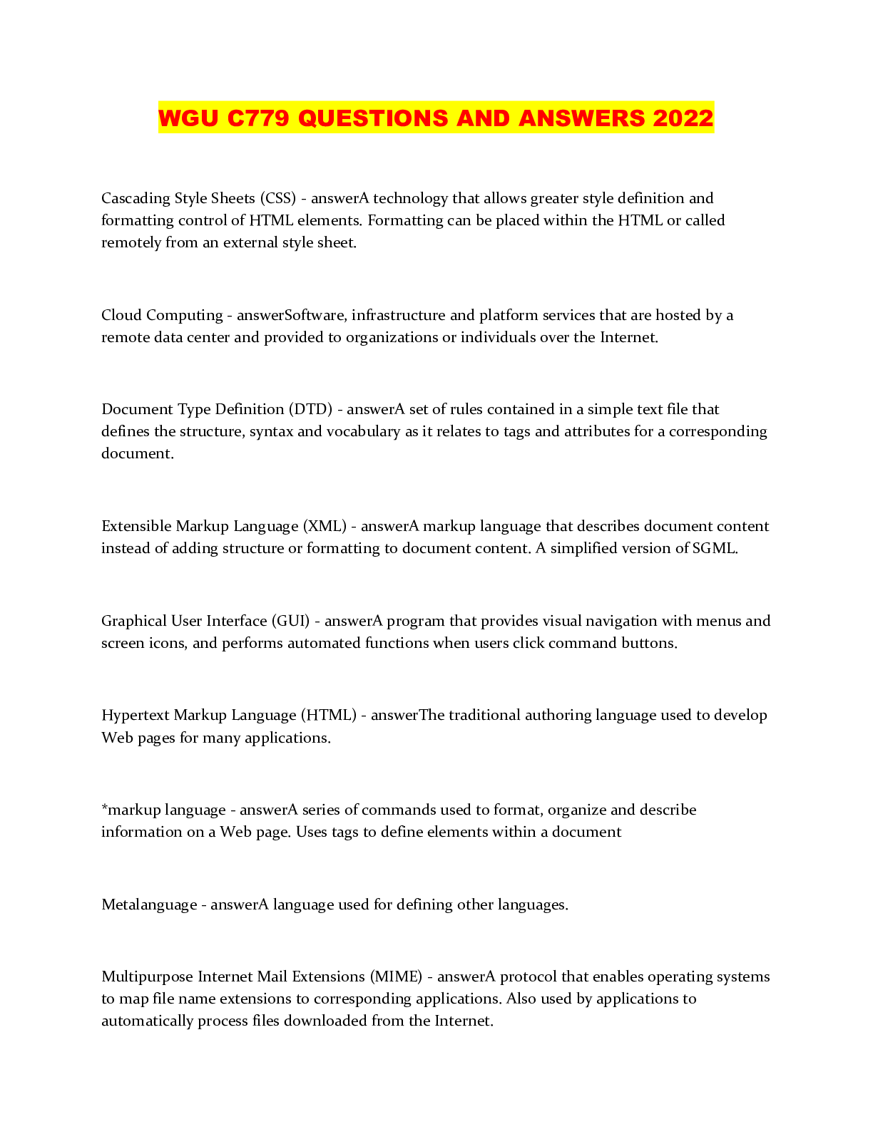 Computer Networking > QUESTIONS & ANSWERS > WGU C779 QUESTIONS AND ANSWERS 2022 (All)