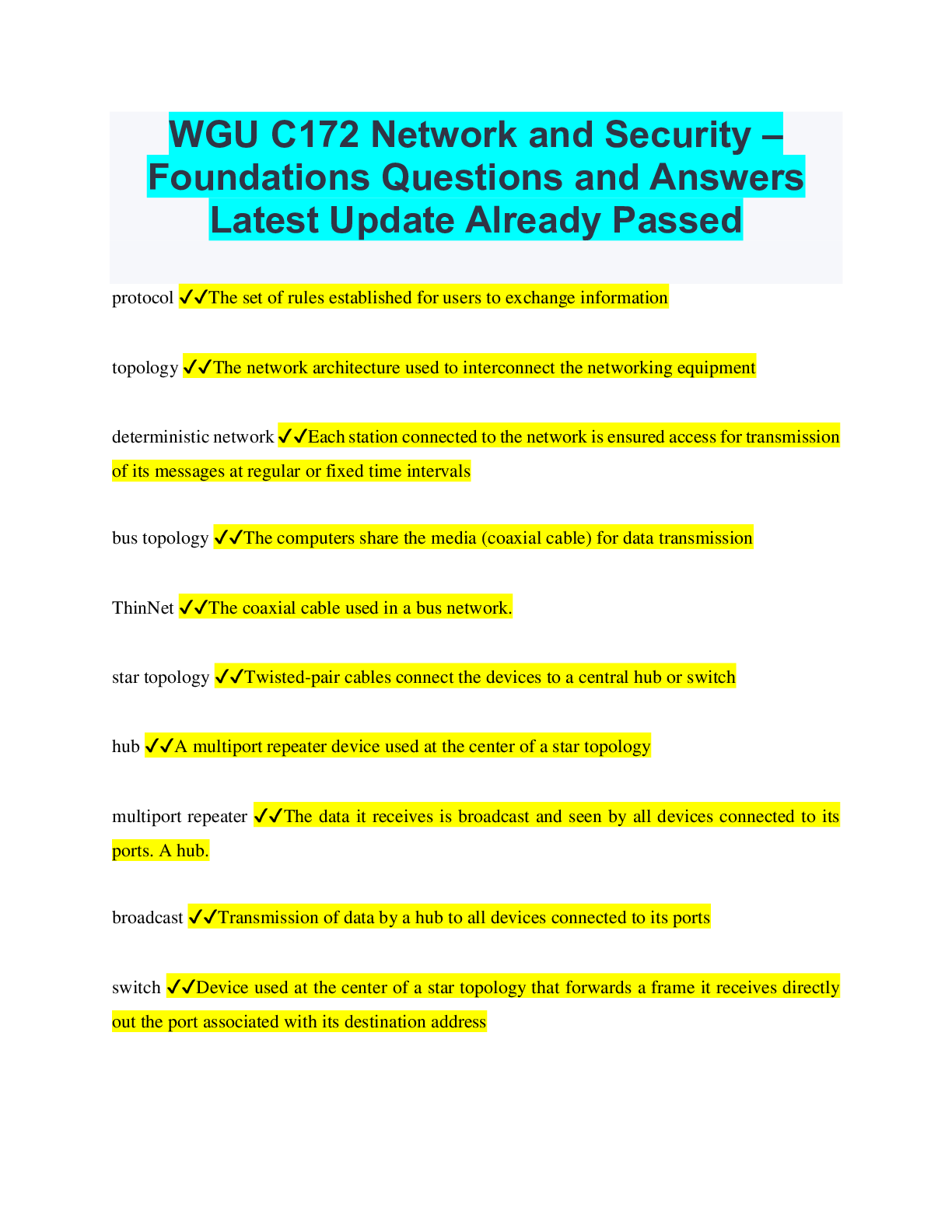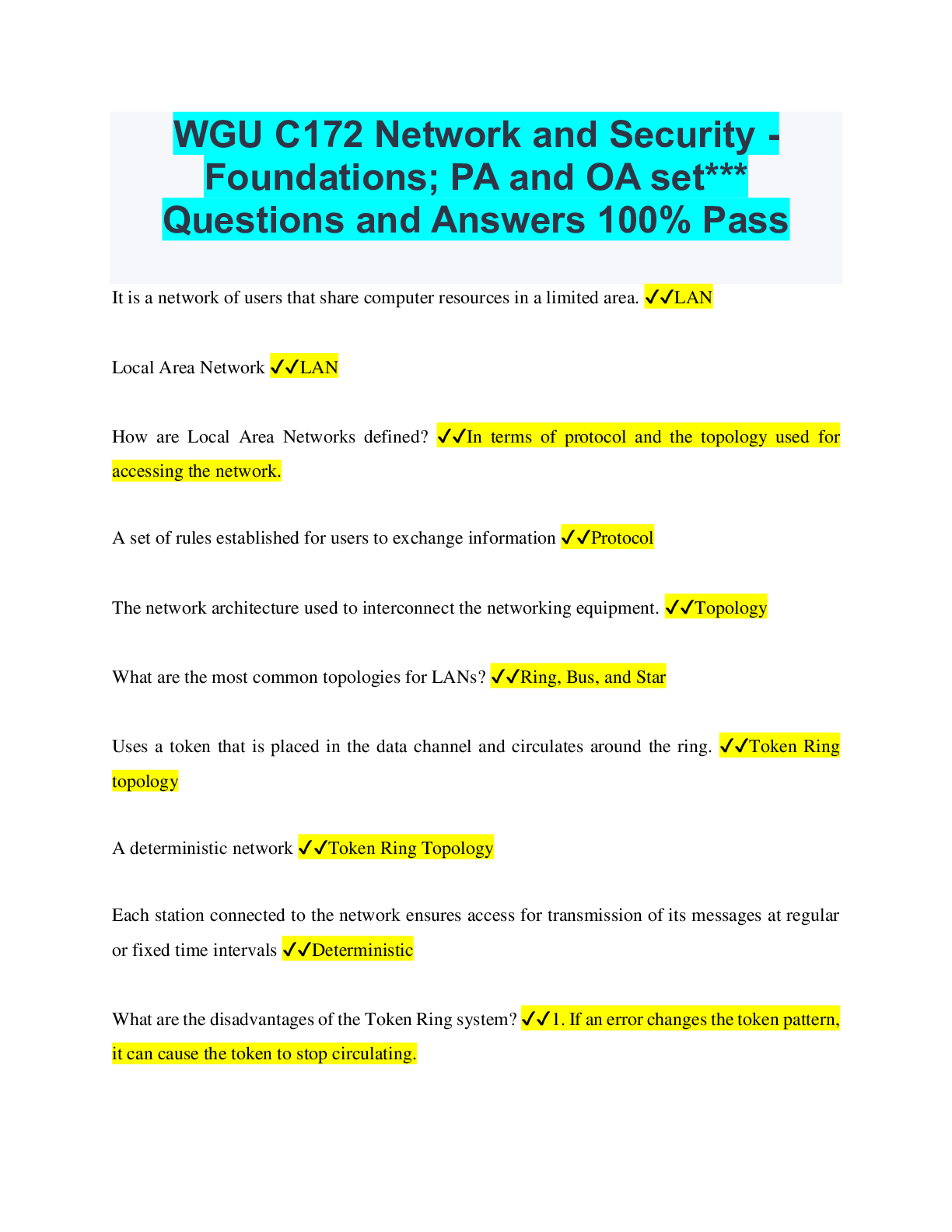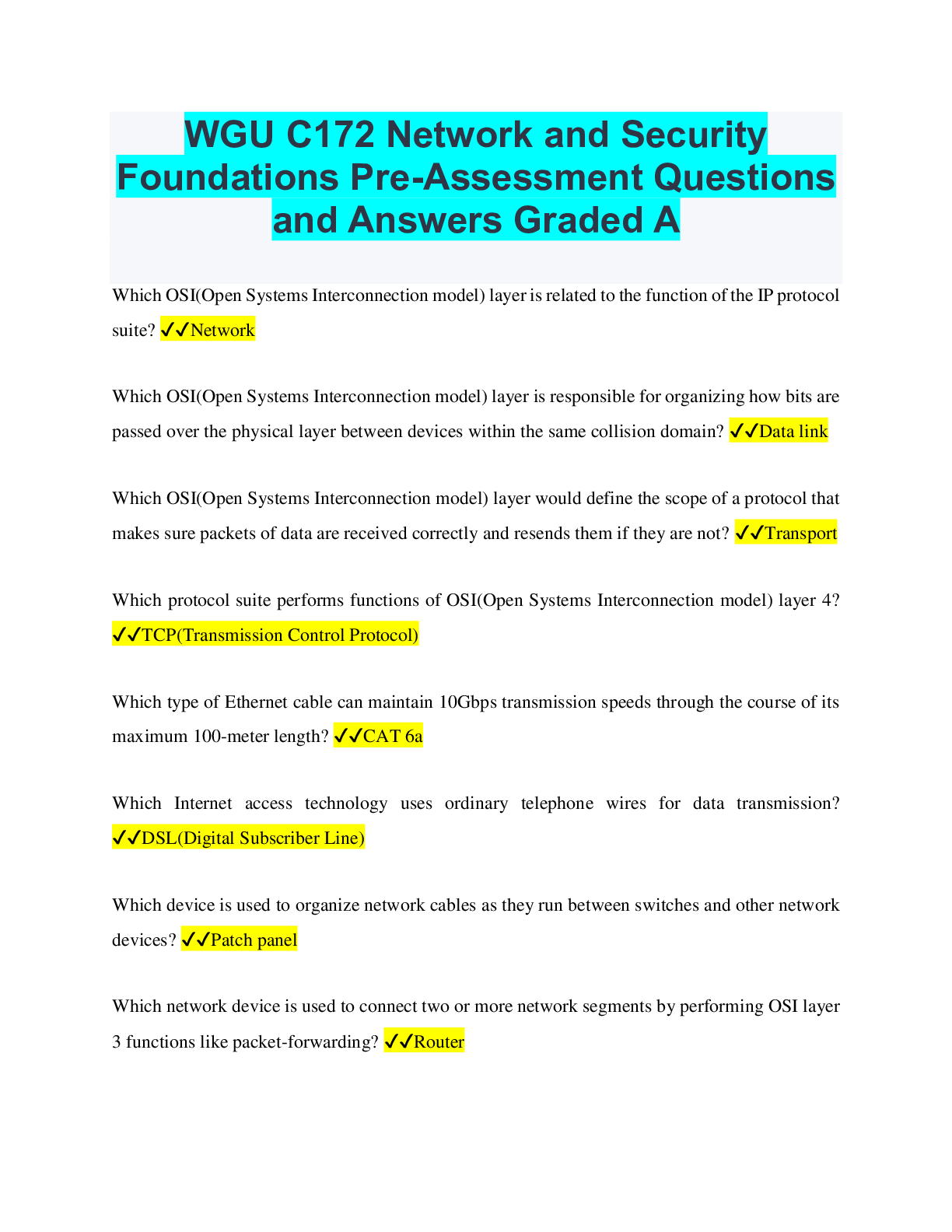 Computer Networking > QUESTIONS & ANSWERS > WGU C172 Network and Security Foundations Pre-Assessment Questions and Answers Graded A (All)