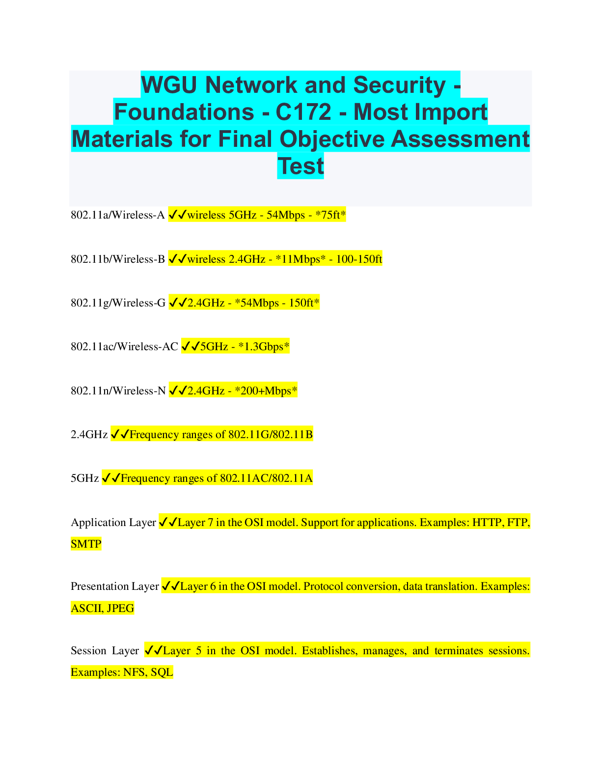 Computer Networking > QUESTIONS & ANSWERS > WGU Network and Security - Foundations - C172 - Most Import Materials for Final Objective Assessment Test (All)
