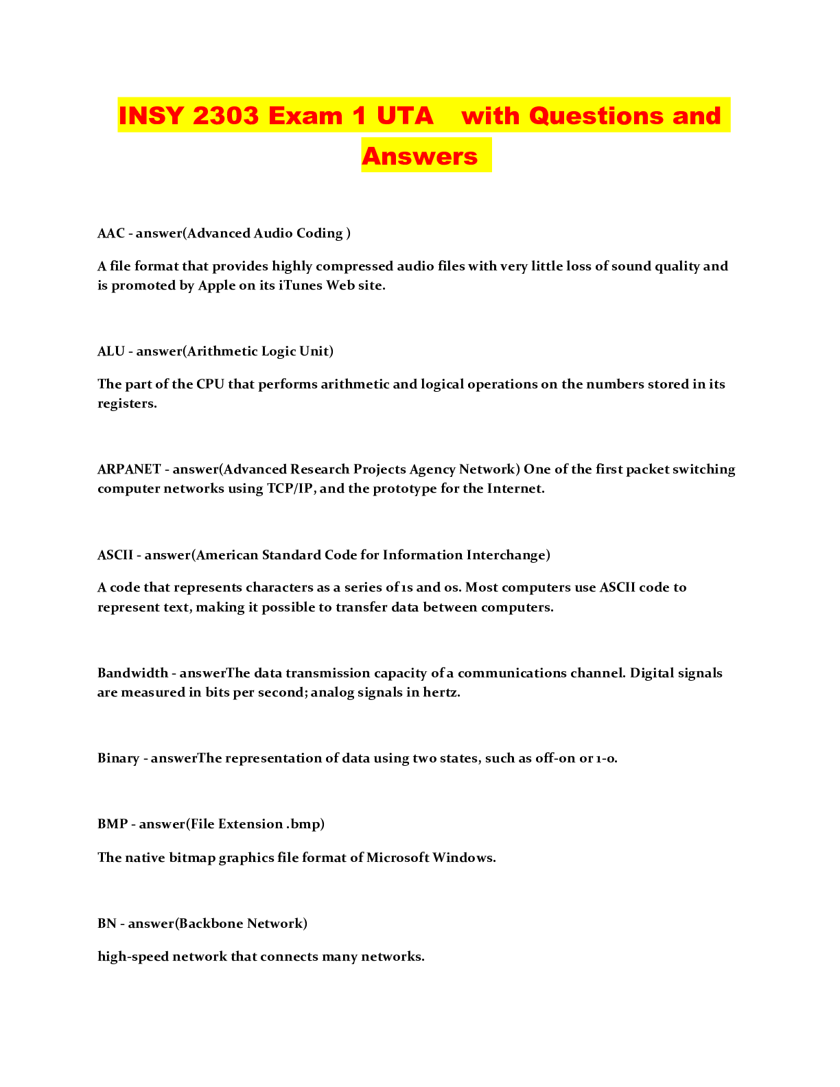 Computer Networking > QUESTIONS & ANSWERS > INSY 2303 Exam 1 UTA with Questions and Answers (All)