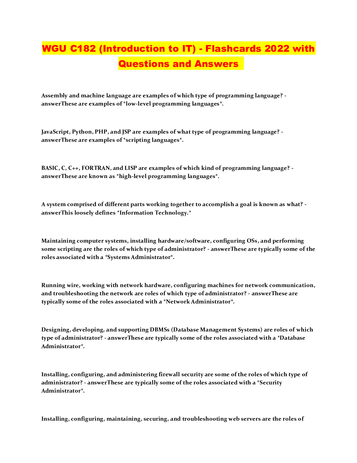 Computer Networking > QUESTIONS & ANSWERS > WGU C182 (Introduction to IT) - Flashcards 2022 with Questions and Answers (All)