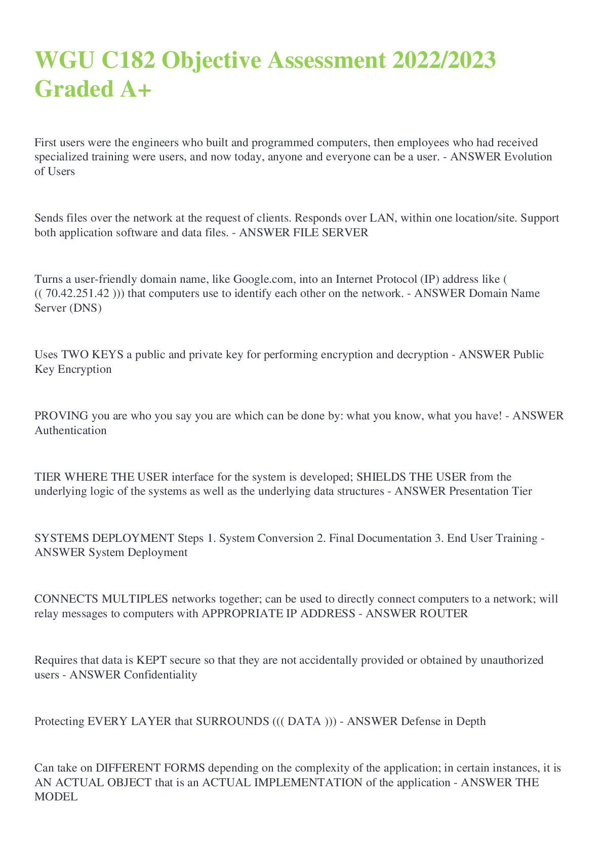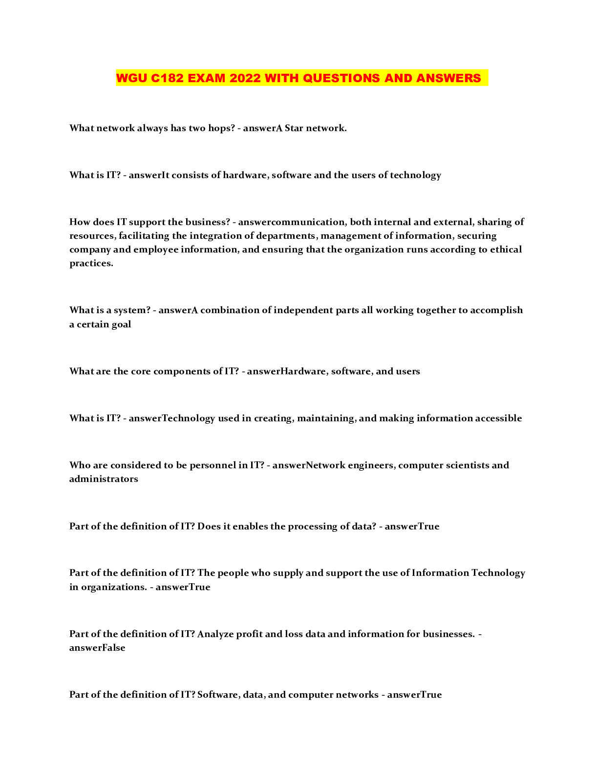 Computer Networking > QUESTIONS & ANSWERS > WGU C182 EXAM WITH COMPLETE SOLUTION (All)