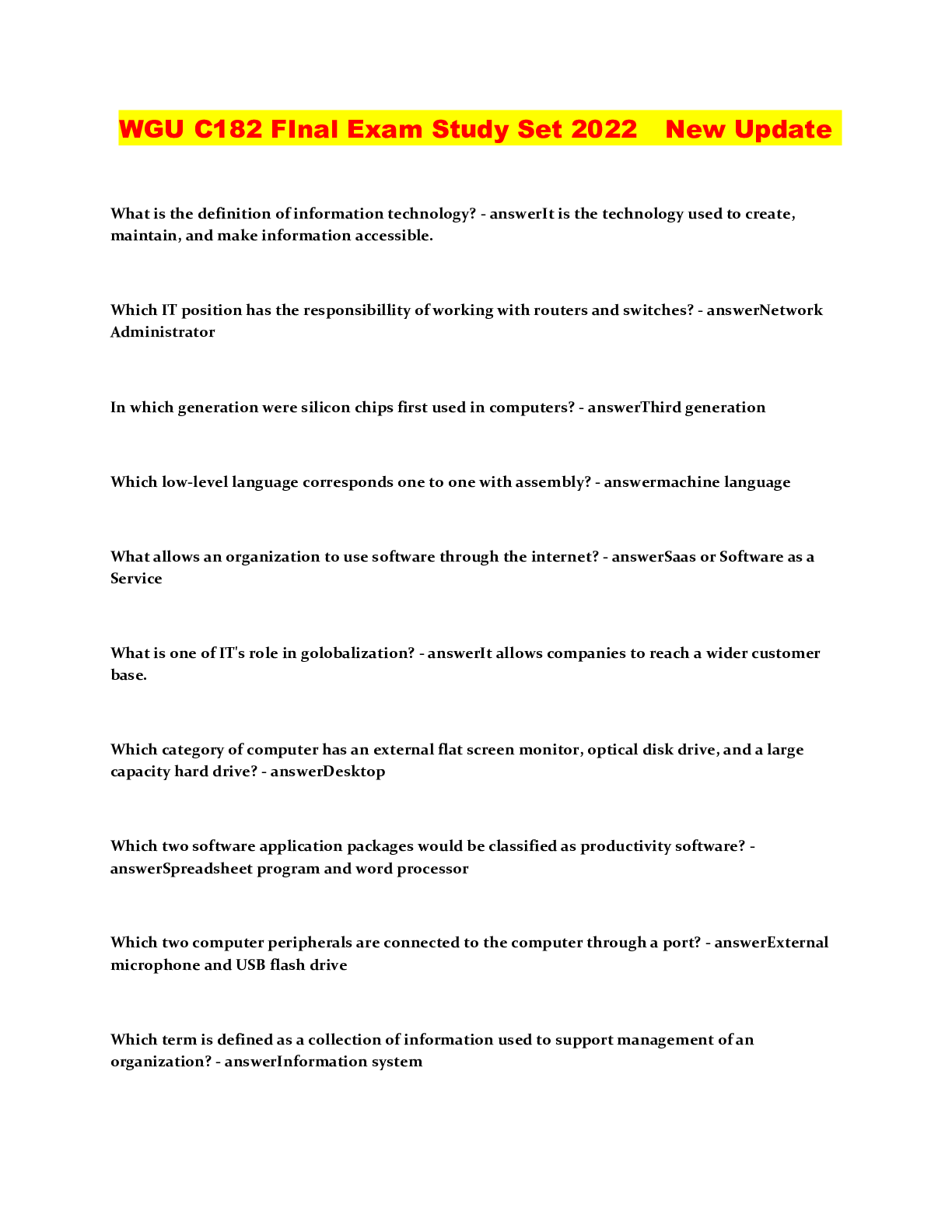 Computer Networking > QUESTIONS & ANSWERS > WGU C182 FInal Exam Study Set 2022 New Update (All)