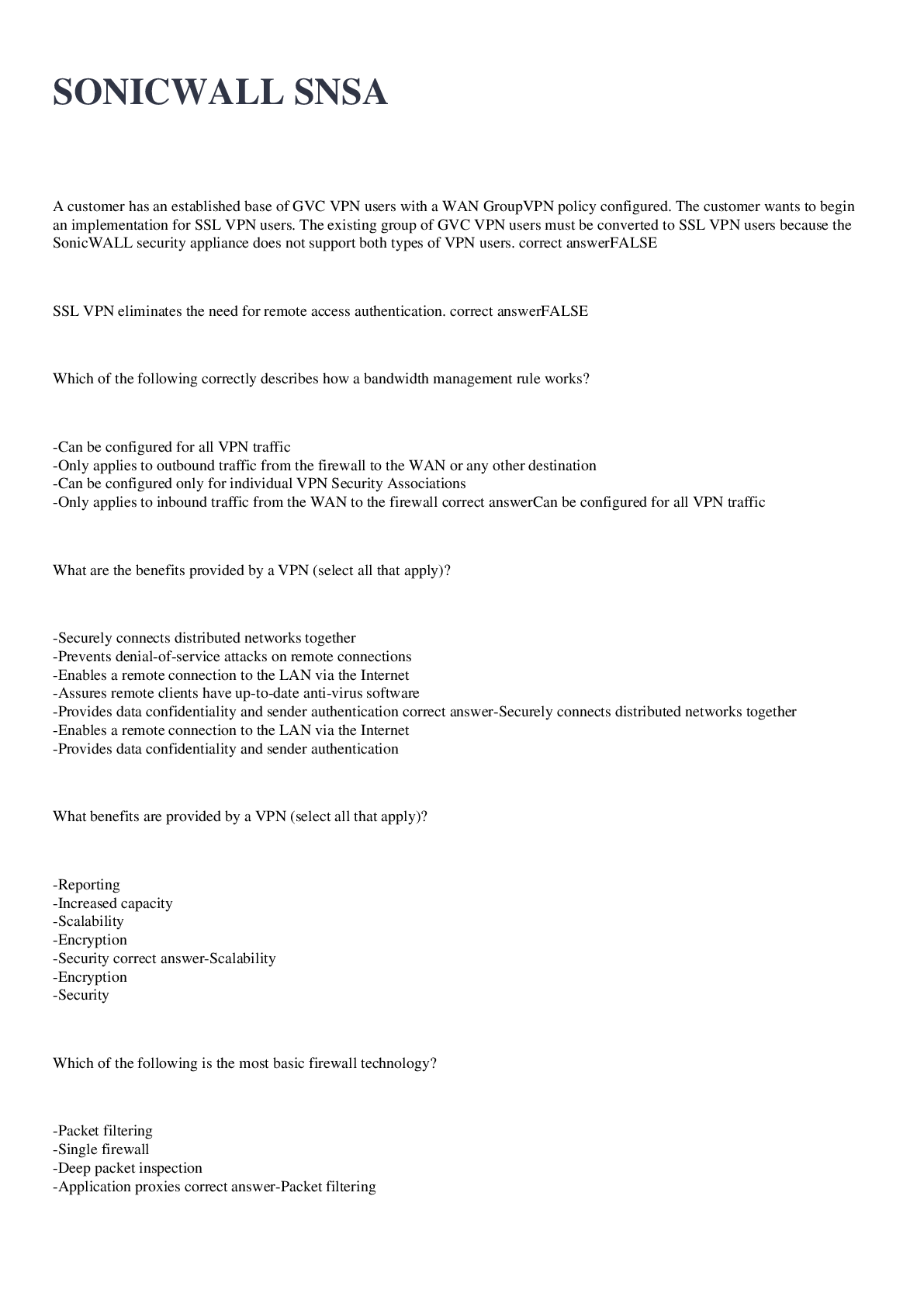 Computer Networking > EXAM > SonicWALL - SNSA exam 2022/2023 with 100% correct answers (All)