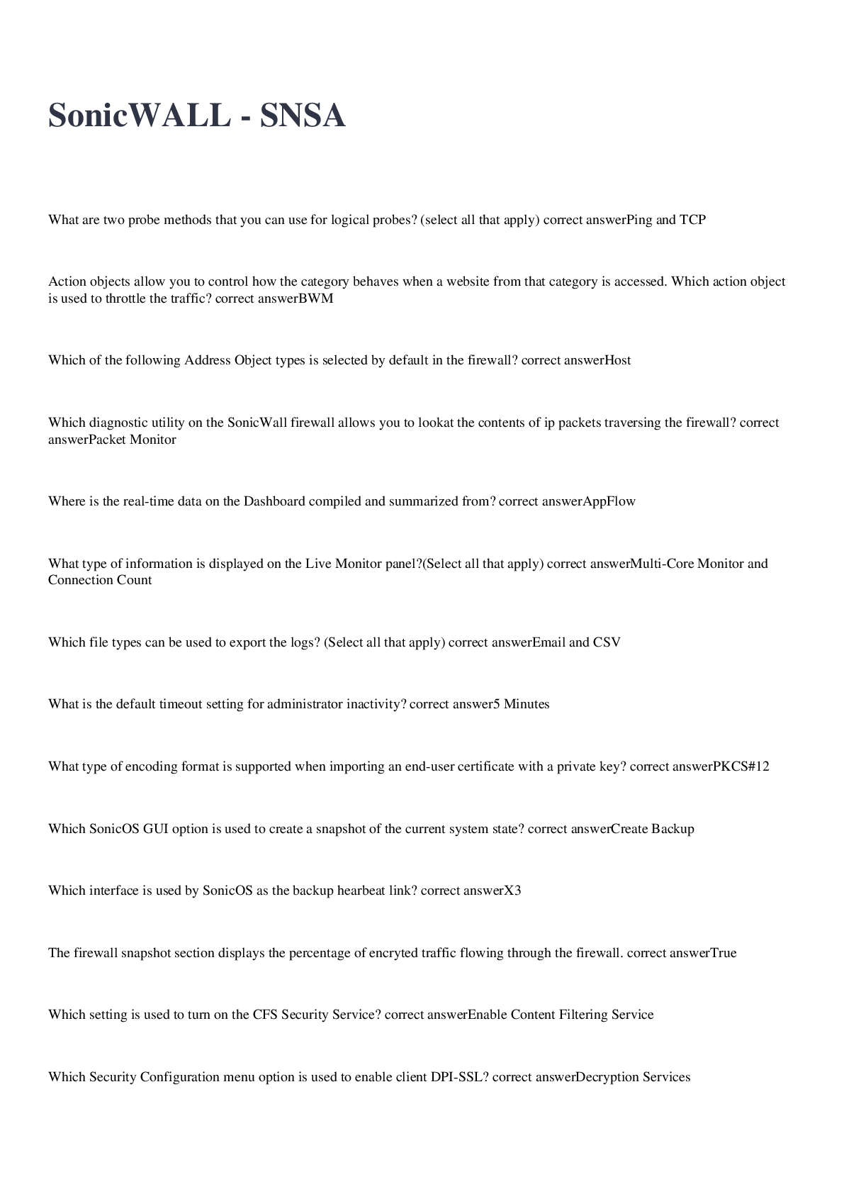 Computer Networking > EXAM > SonicWALL - SNSA 2022/2023 with 100% correct answers (All)