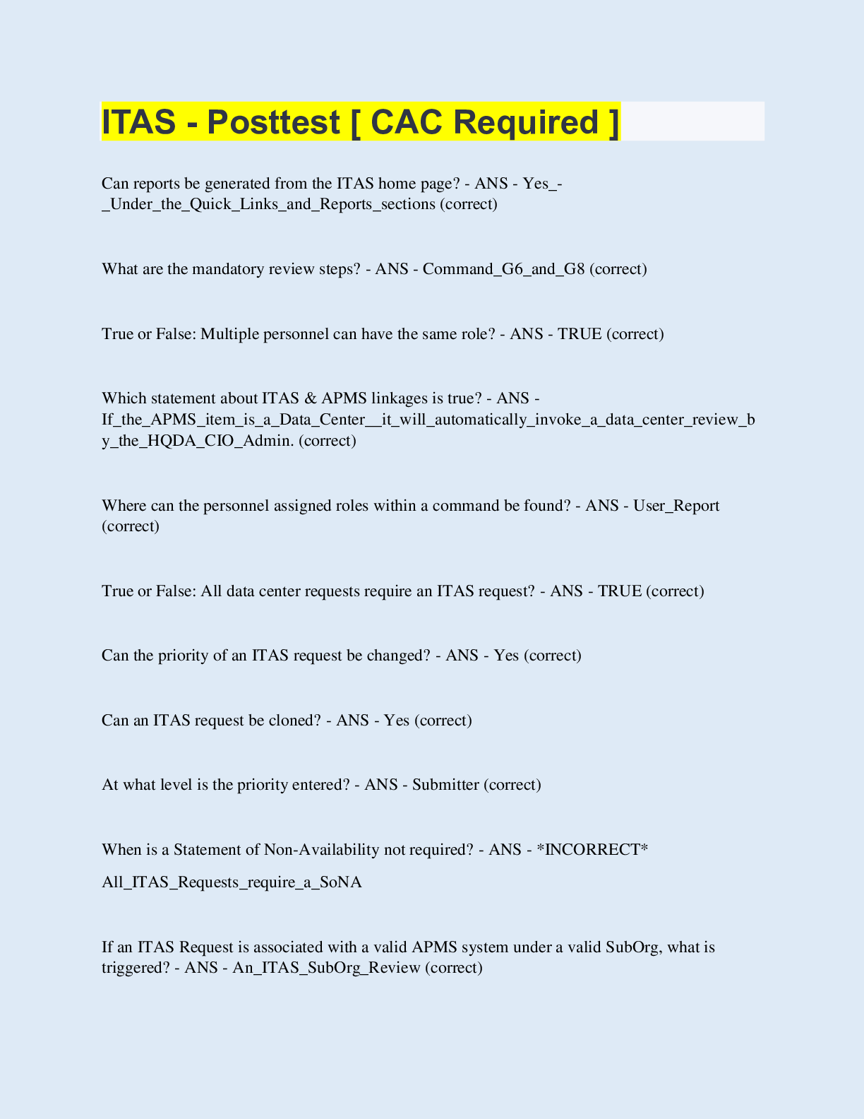 Computer Networking > EXAM > ITAS - Posttest [ CAC Required ] | 40 Questions with 100% Correct Answers | Updated & Verified (All)
