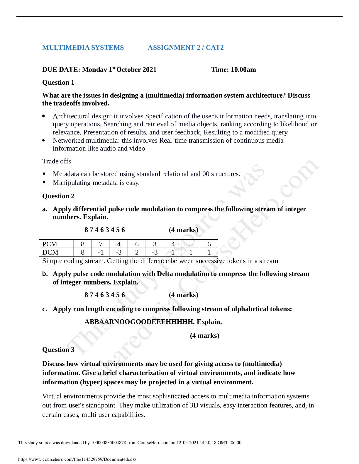 Computer Networking > EXAM > MULTMEDIA SYSTEMS ASSIGNMENT 2 CAT 2 (All)