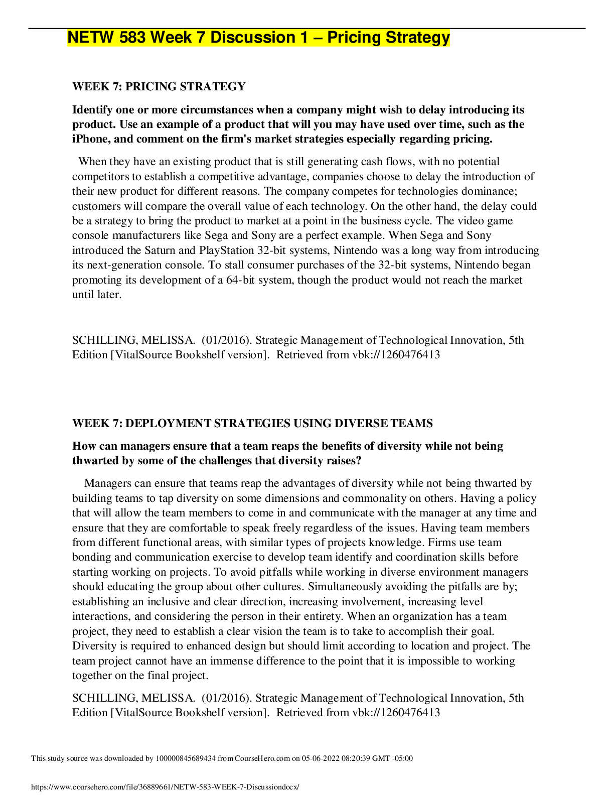 Computer Networking > DISCUSSION POST > NETW 583 Week 7 Discussion 1 – Pricing Strategy (GRADED A) (All)