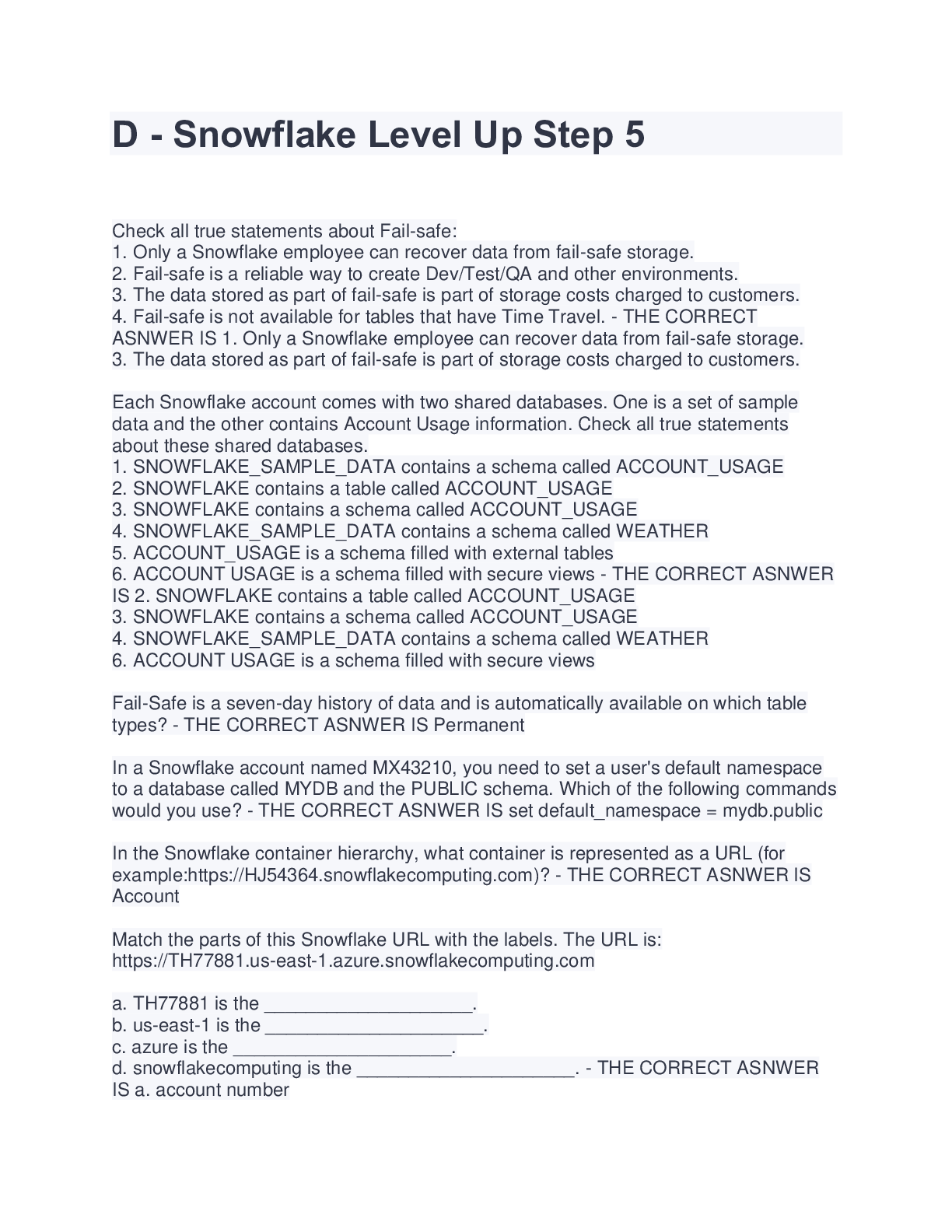 Computer Networking > EXAM > D - Snowflake Level Up Step 5 (Newest 2022/2023) 100% Correct and Verified (All)