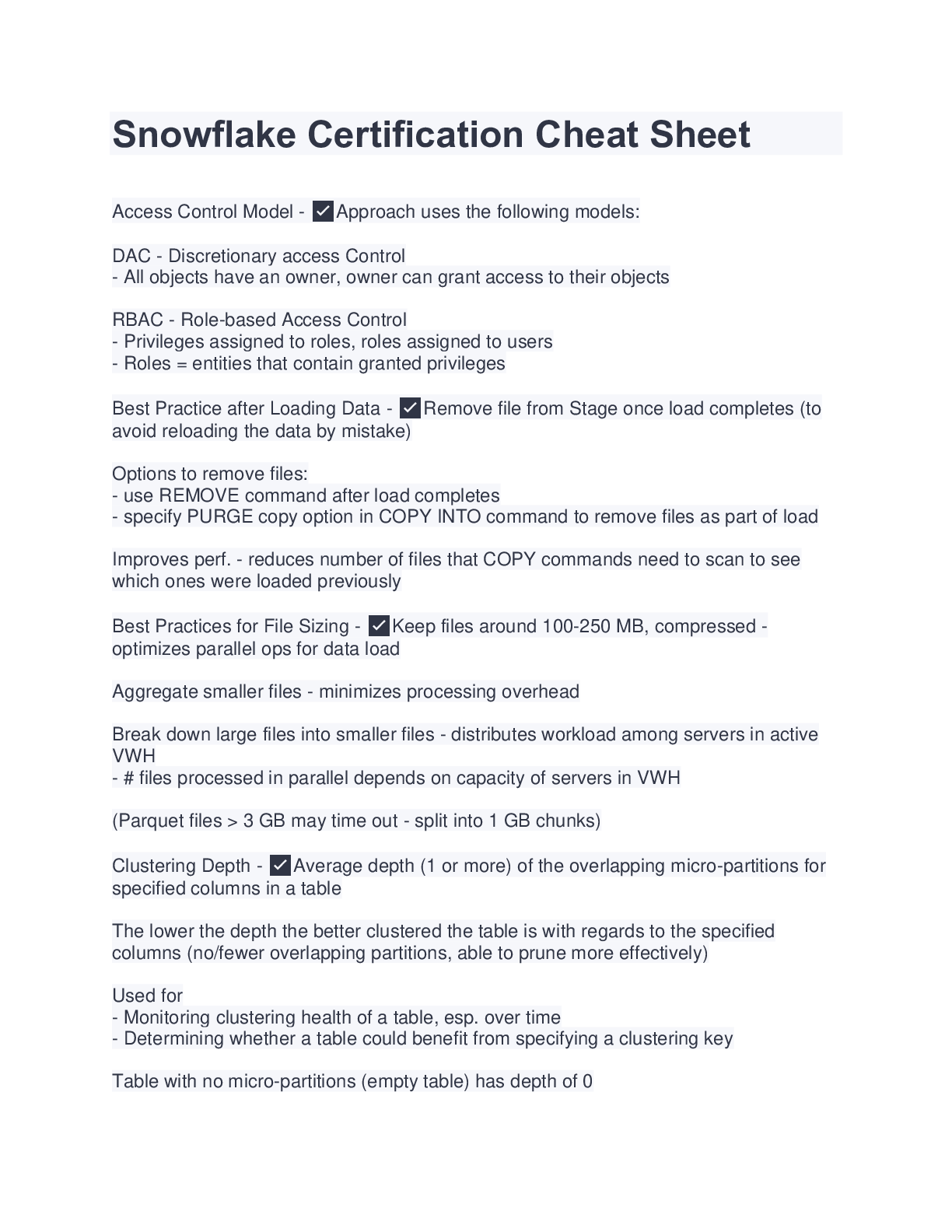 Computer Networking > EXAM > Snowflake Certification Cheat Sheet Exam 2022/2023 (All)